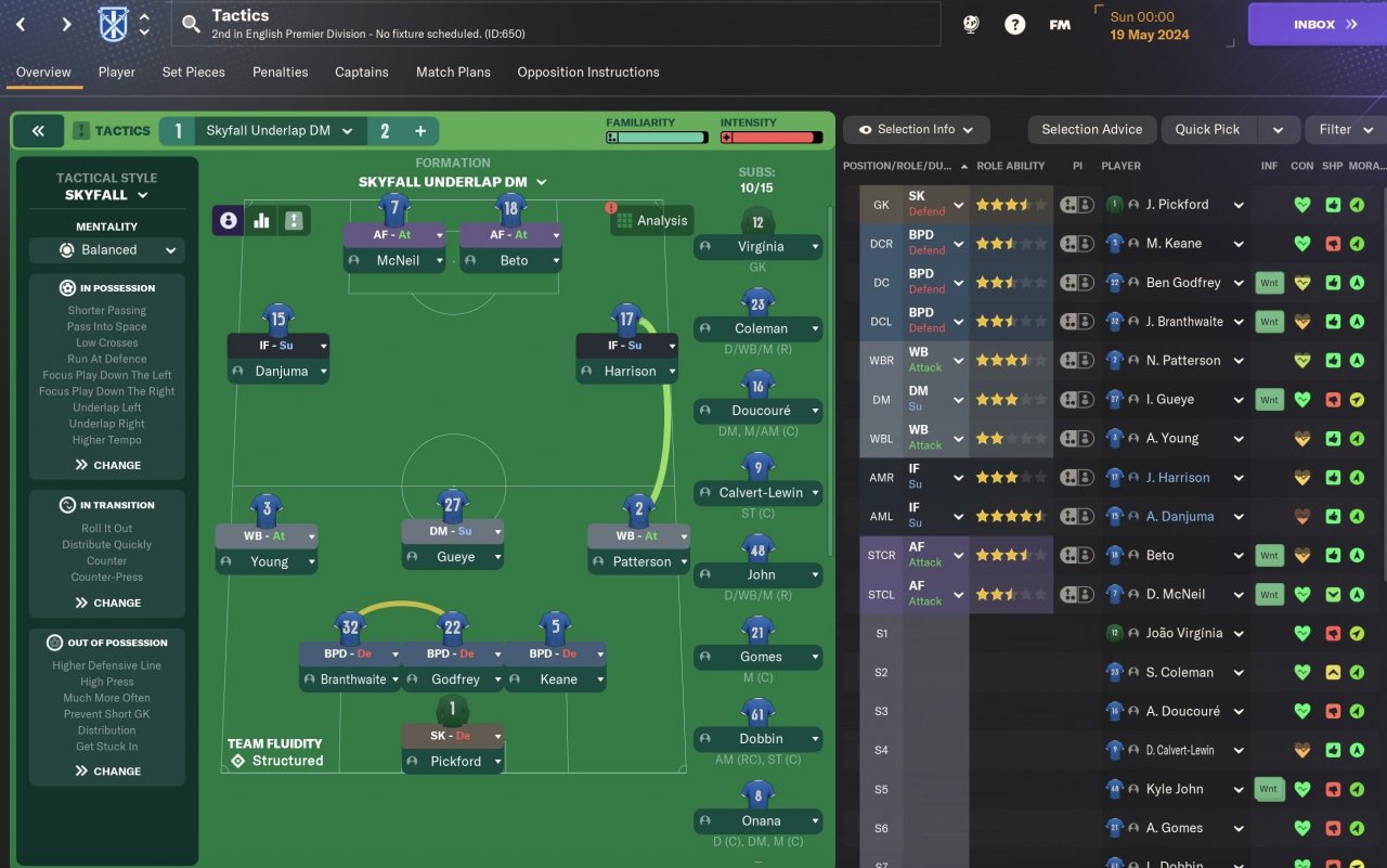 Variant of Skyfall Underlap 5-1-4 WB. Tested it with Everton, went on holiday whole season. No Set Piece Instructions. Everton would of won the league without 10 point deduction.