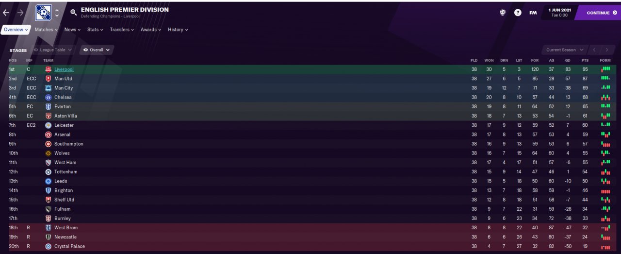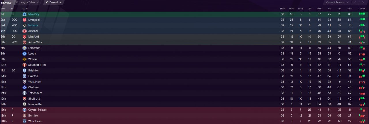 Did holiday mode test with Man City and Fulham. City won the league while Fulham finish third.