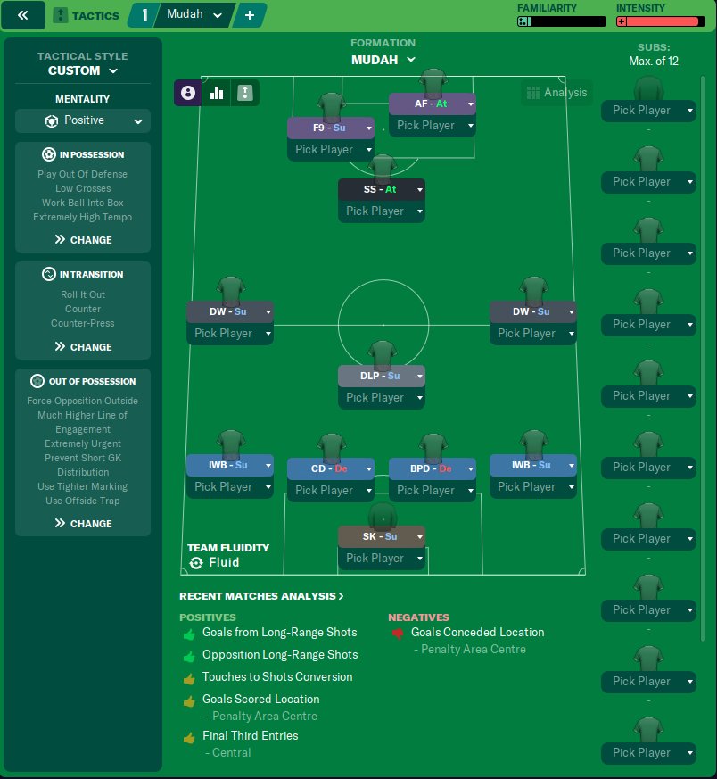 As strikerless tactic became too mainstream, I'm trying to create tactic with not only one but two strikers.Did holiday mode test with Man City and Fulham. City won the league while Fulham finish third.