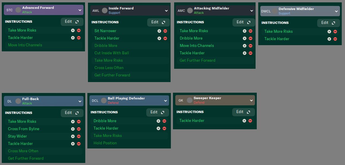 Removed run wide with ball, dribble more and shoot less often to FB