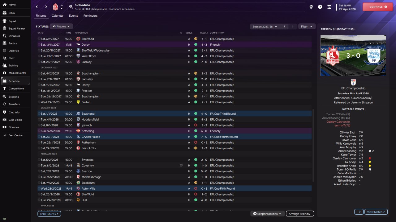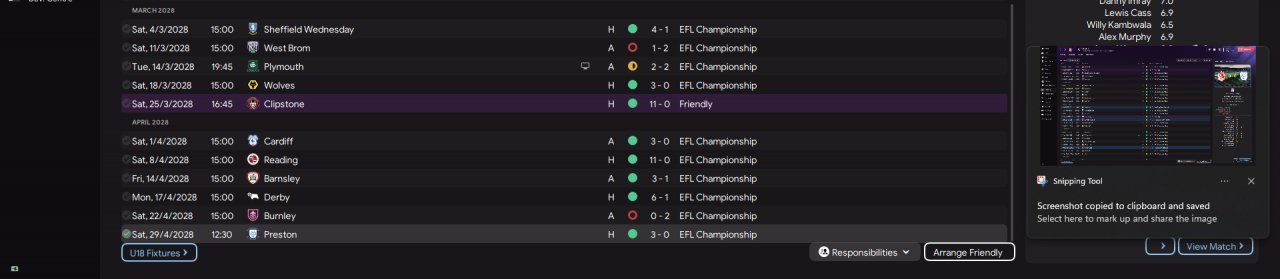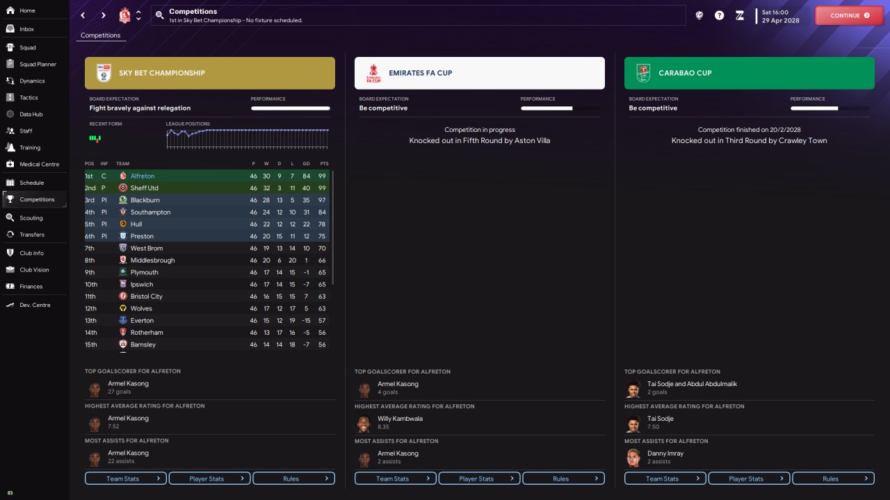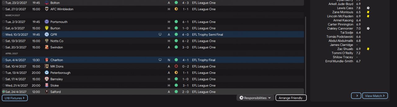 I don't know whether i'll be able to keep him or not next season but he was happy abut staying at the end of it all. Anyway here are the fantastic results. I tended to be more cautious or balanced away from home and see how the game unfolded but at home i mainly stuck to positive throughout. This led to some absolute thrashings and i was very pleased. The home results were pivotal in the promotion push.