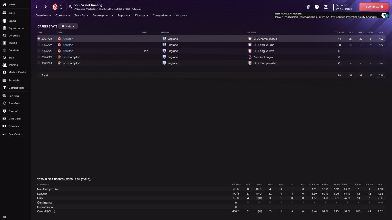 The Lone Wanderer said: Armel Kasong. He is an absolute world beater. There was no way promotion was gonna happen without this stud. He tops the assists and goals charts for the league as well as having the best average rating.