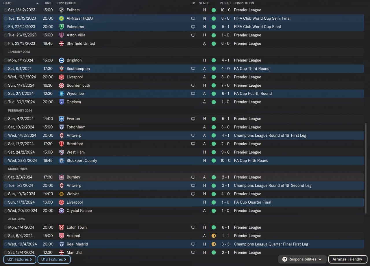 Undefeated in PL and conceded only 12 goals. Won every cup except Carabao Cup