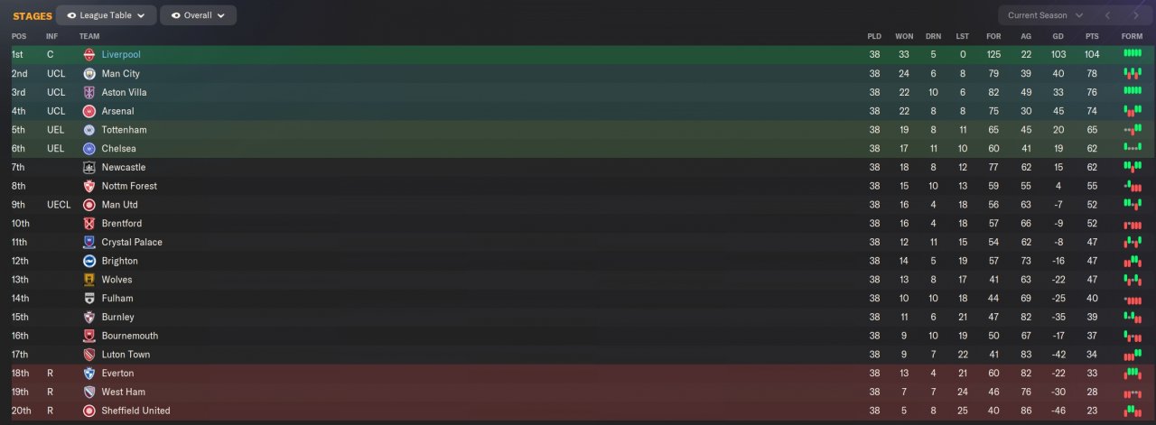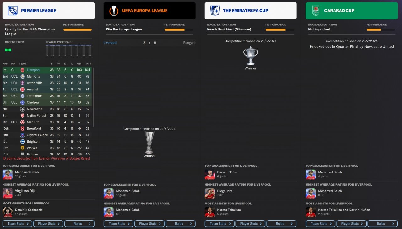 104 pts in PL and won both Europa League and FA Cup.