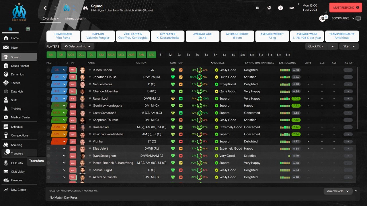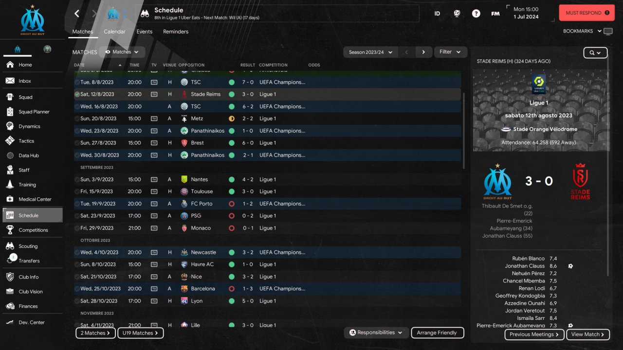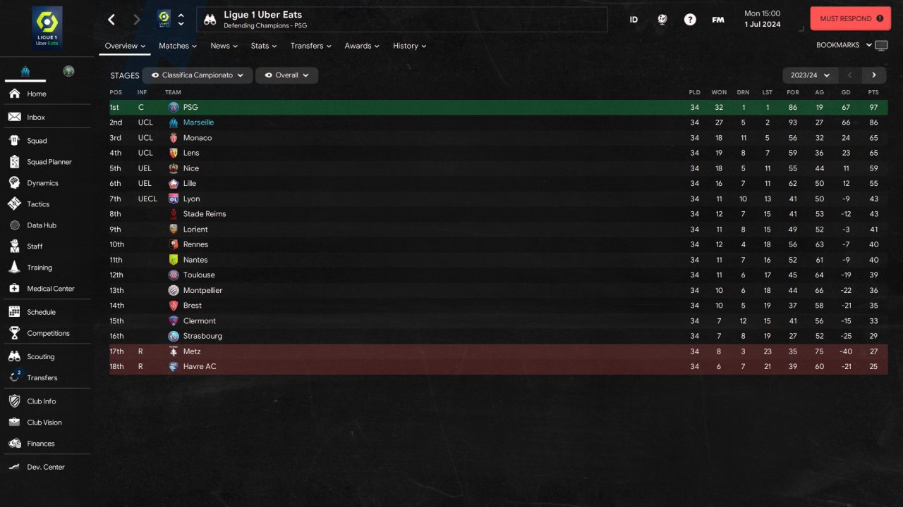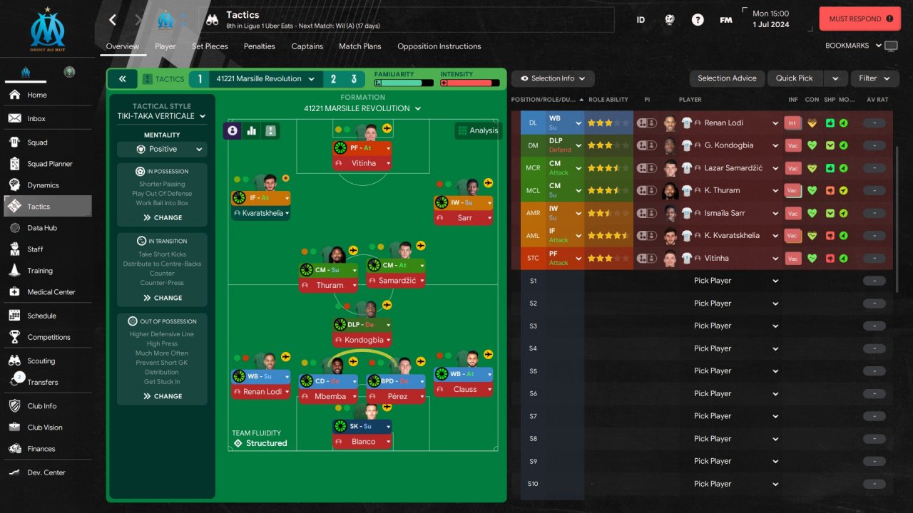 With this tactic I tried to give a new identity to my team: quality and winning football. the game starts from the goalkeeper passing through the defenders with the midfielder who lowers between the two central defenders and the fullbacks who go up. The attacker must move to facilitate the inclusion of midfielders and external attackers. with the overlap of the WBR, participate in the attack 5/6 players (2WB, IF, IW, PF, CM at). I got great results beating the PSG in the final of the French Cup; in the champions league I lost undeservedly with the man utd. In ligue 1 the psg won 32 games.