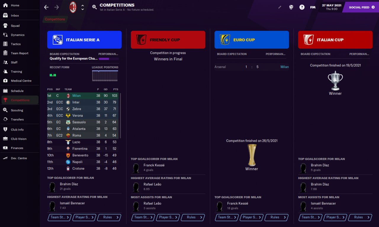 It won me the Scudetto, EURO Cup and Italian Cup.