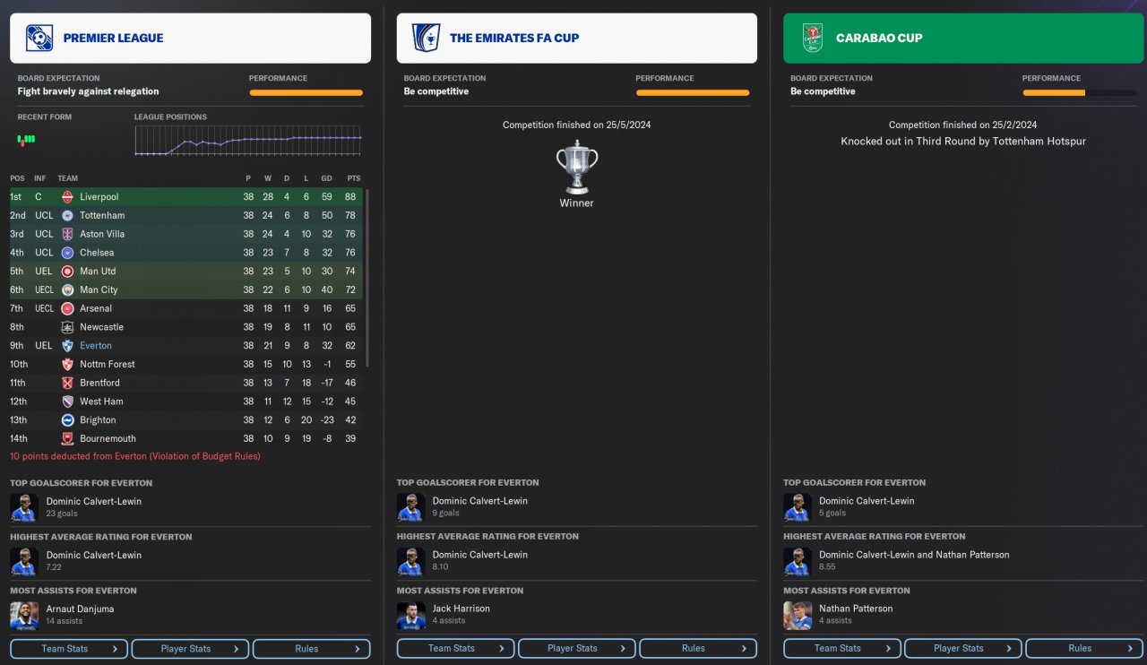 9th in PL with 10pts-deducted Everton and won FA cup.