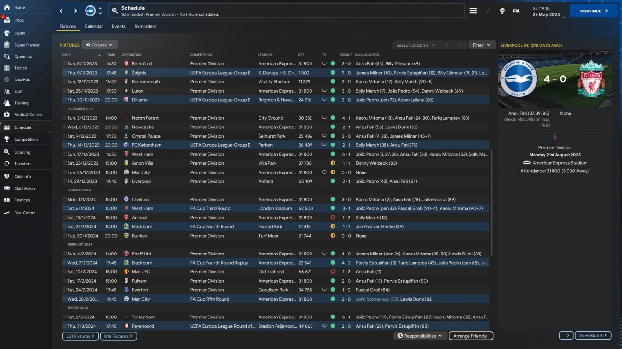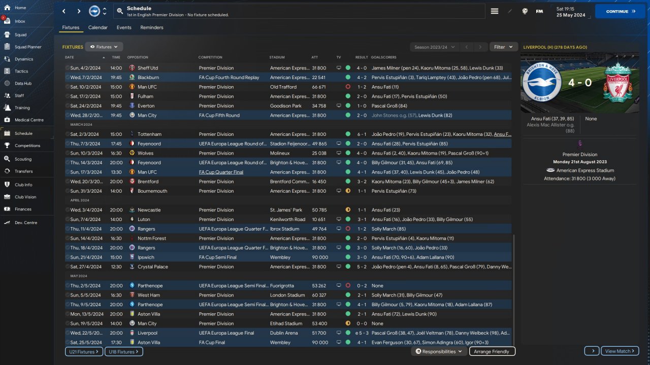 Won PL, FA-cup and Europe League with Brighton.