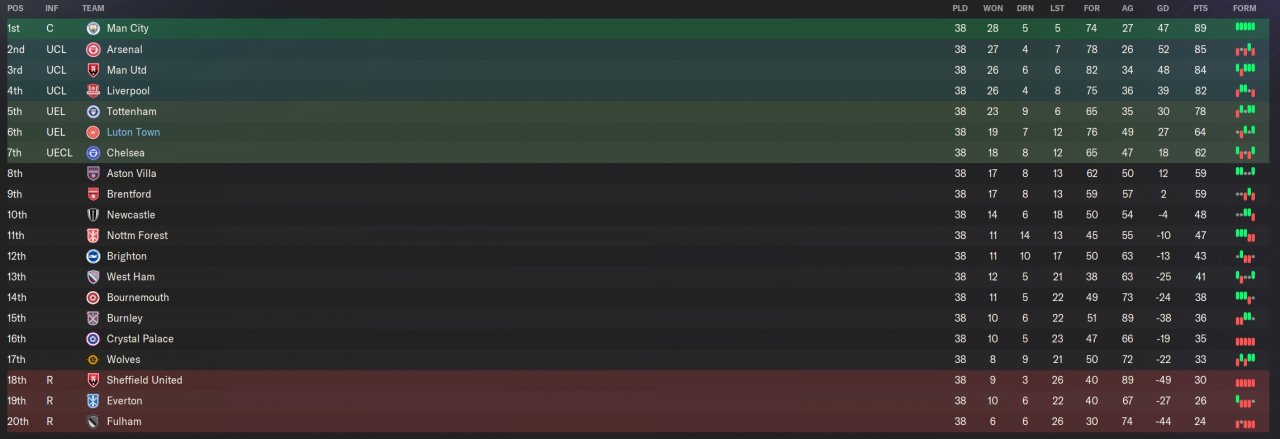 6th in PL with Luton and won FA cup.