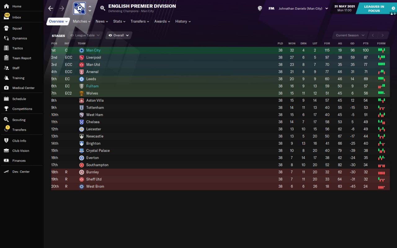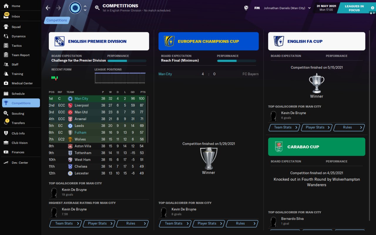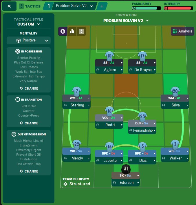 A 4-2-2-0 which turns as the RPM roams around the field and the DLP stays back, had good results with Man City as they scored over 100 goals and conceded less than 20 and good results Fulham.