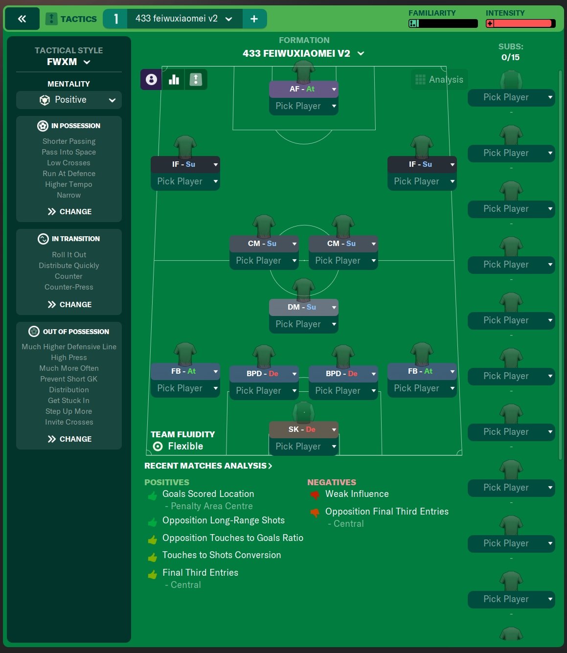 As it's clear that in a 442 formation, "cross more often" PI yields notably positive results, let's see if it works in a "feiwuxiaomei" style 433 (i.e. as little TIs and PIs as possible).