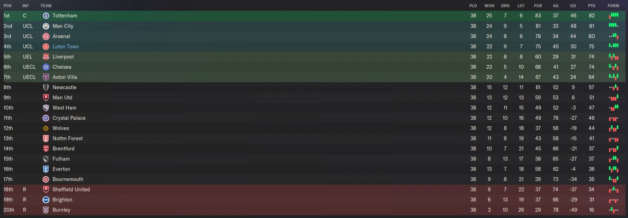 4th in PL as Luton.