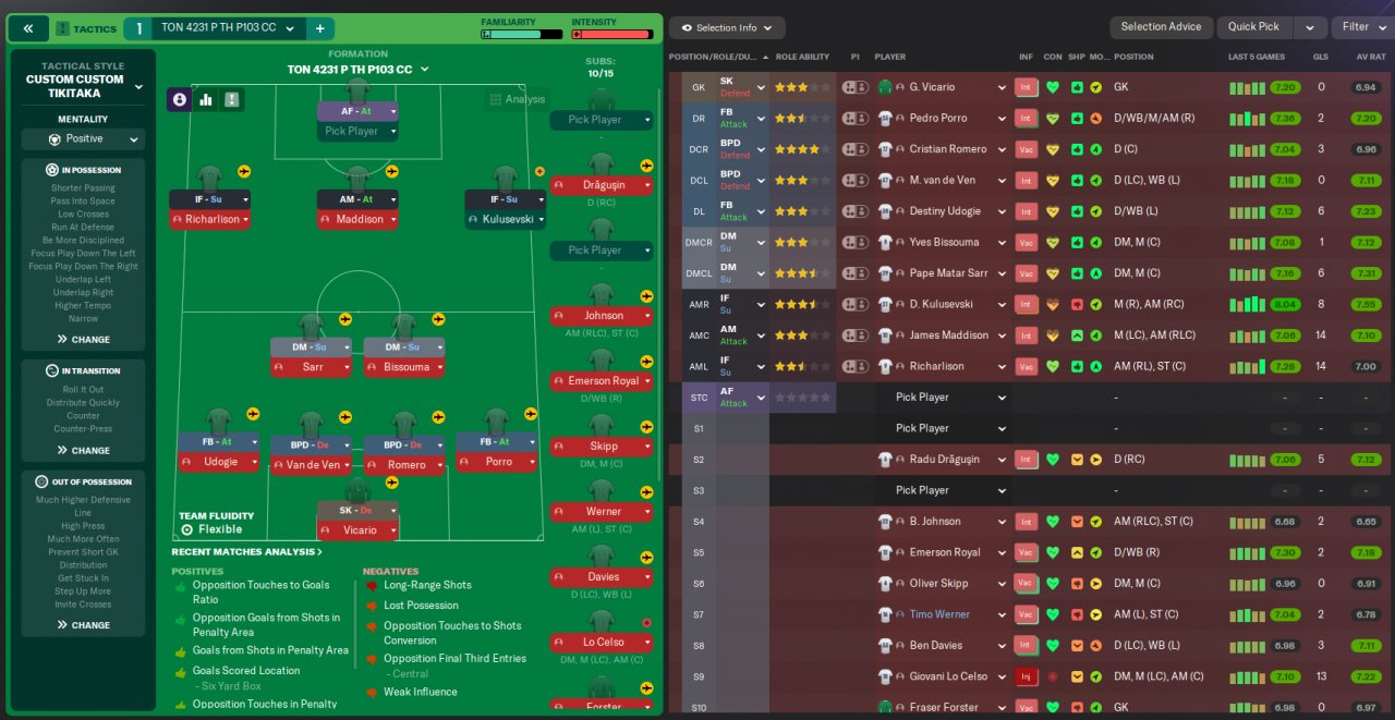 Double pivot 4231 high tempo short passing pass into space
