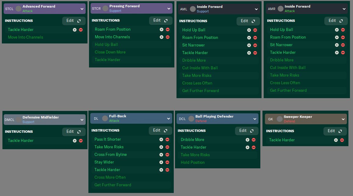 Also as I have tested with different teams, using the same PIs for FB in this tactic results in rather poor results for non-424 formations