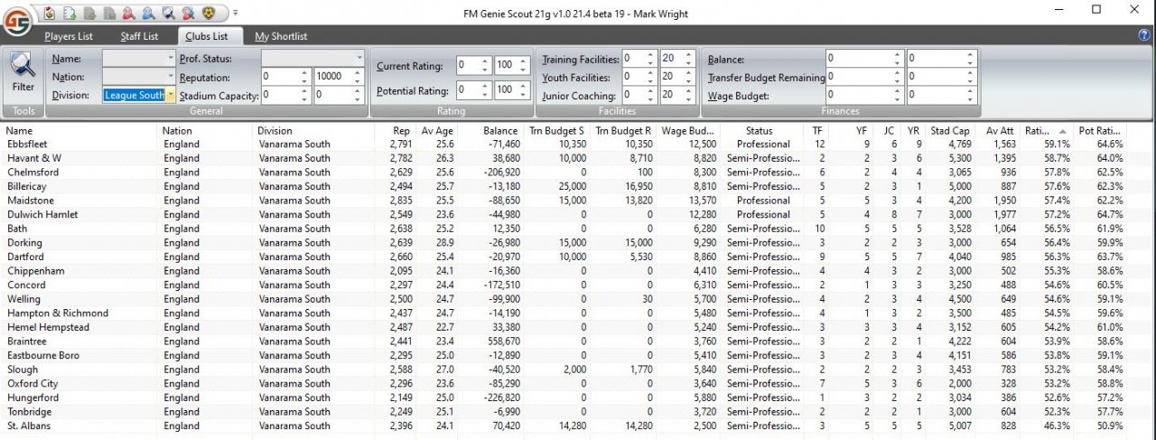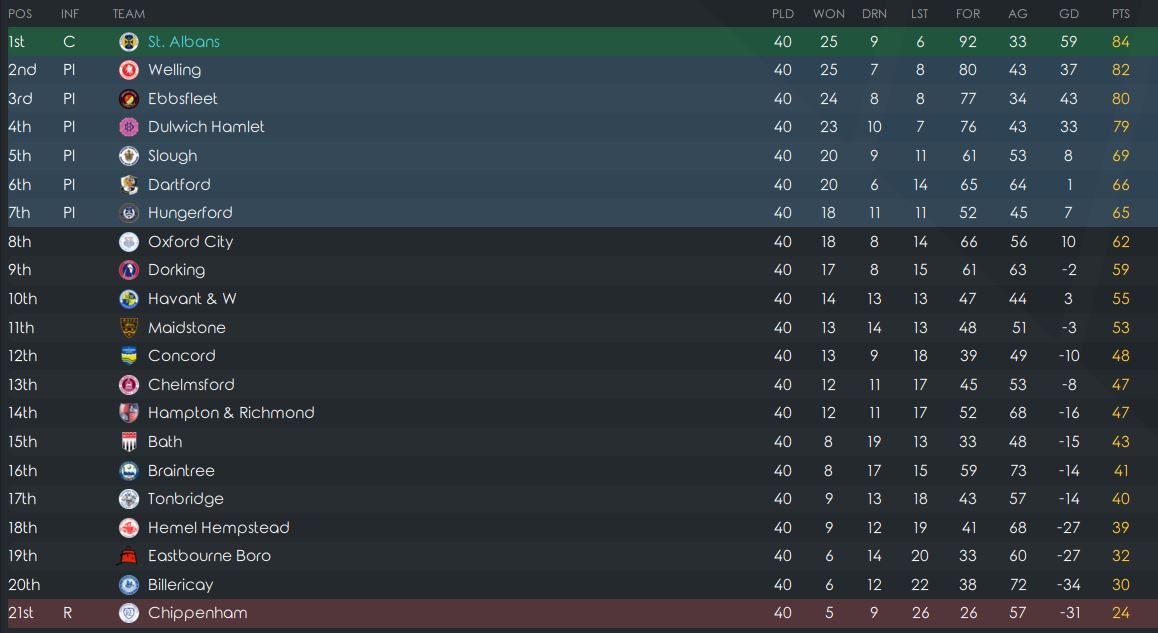By way of example, Vanarama South, the averages from my save are as follows: