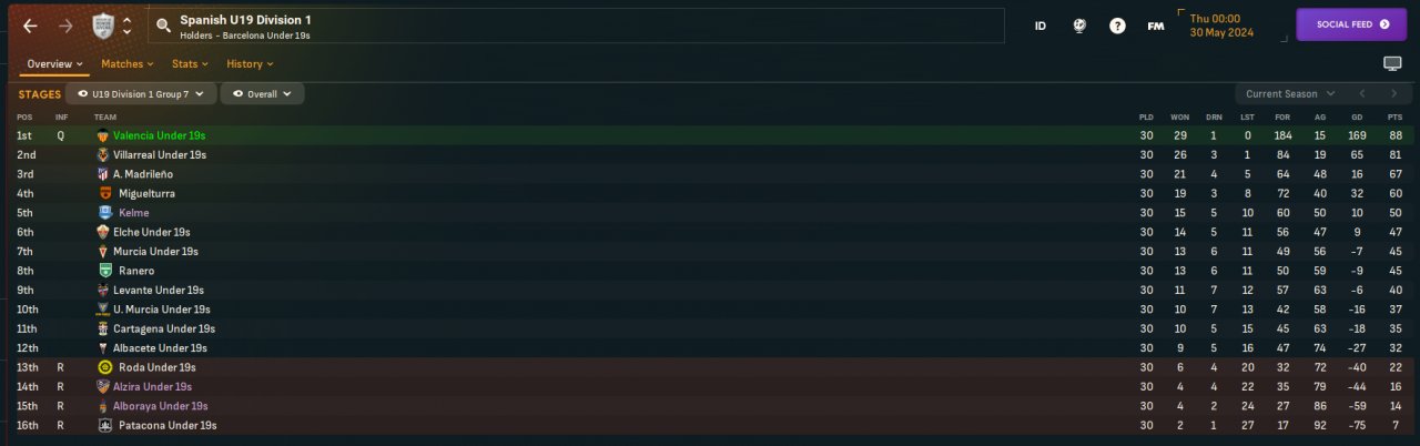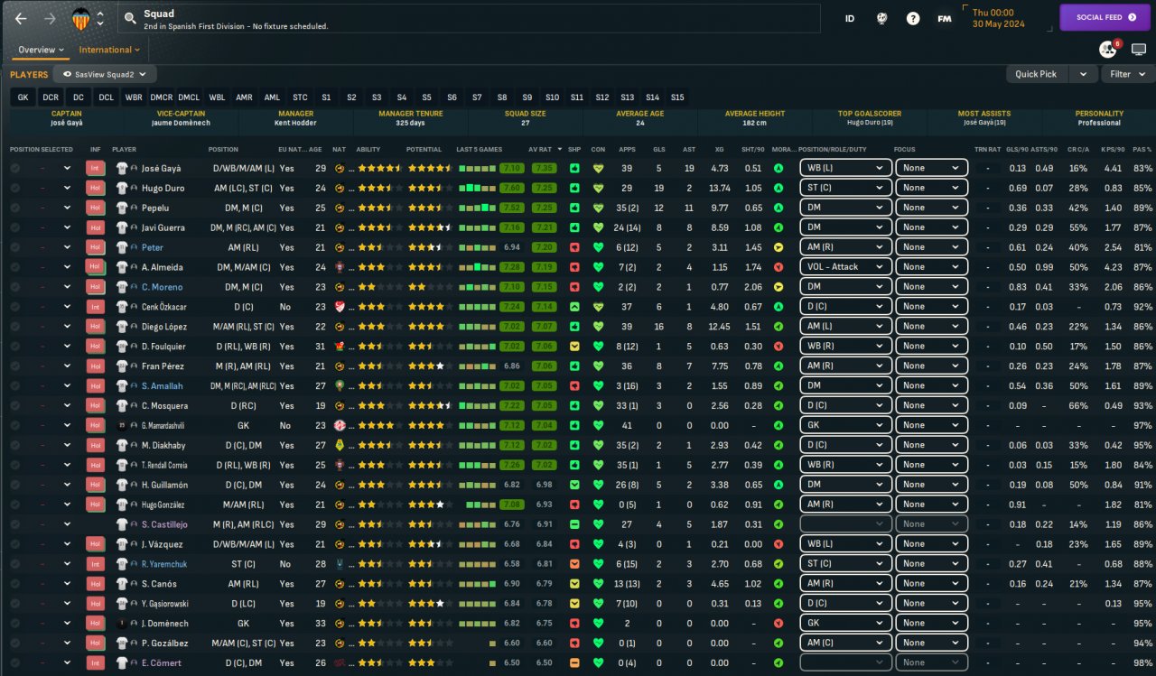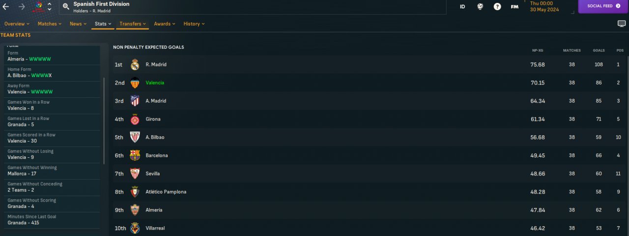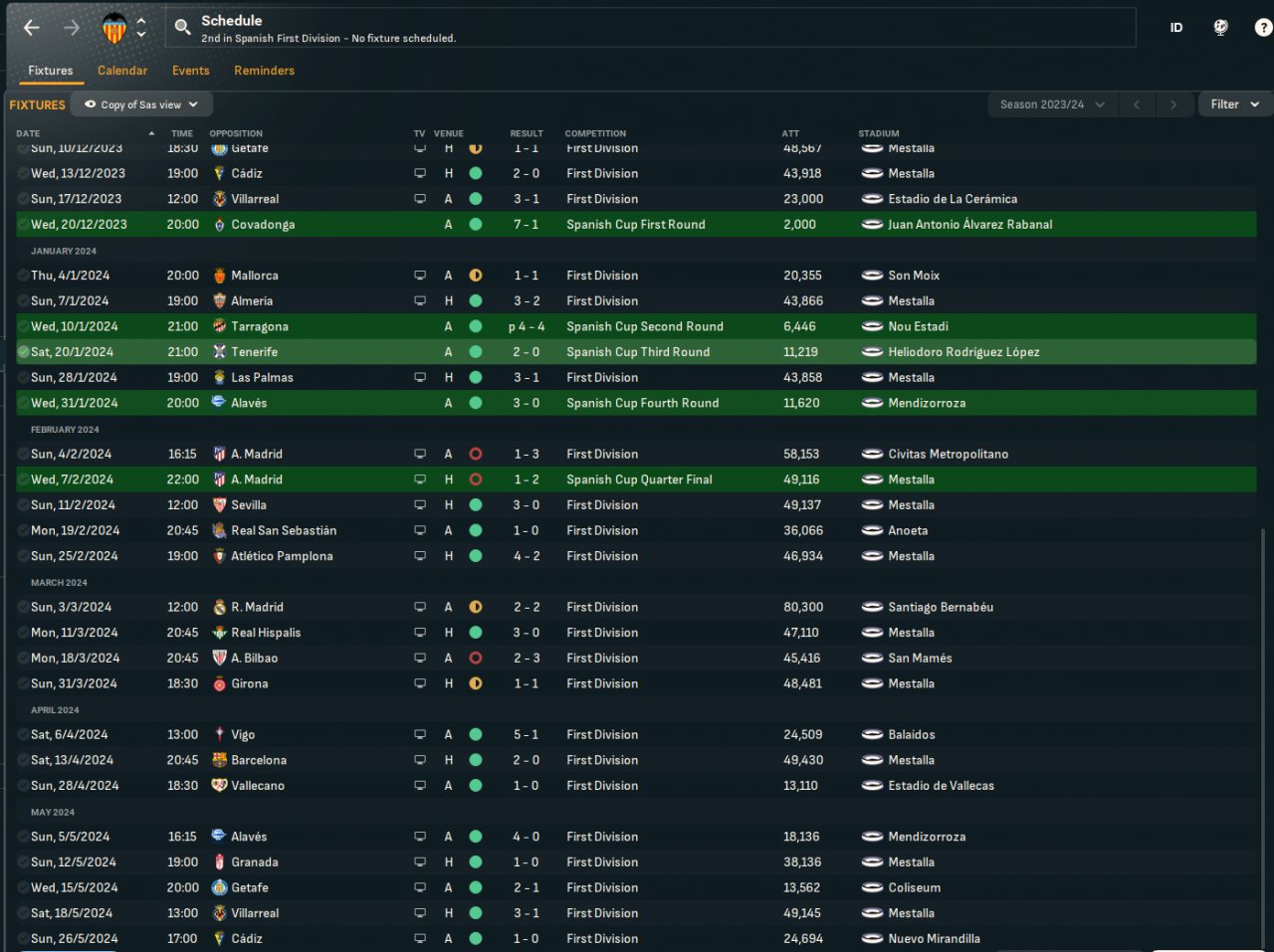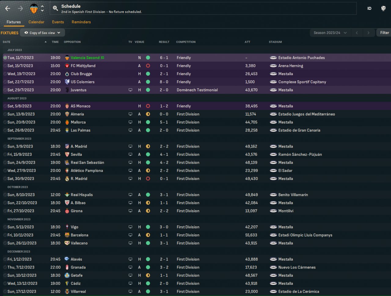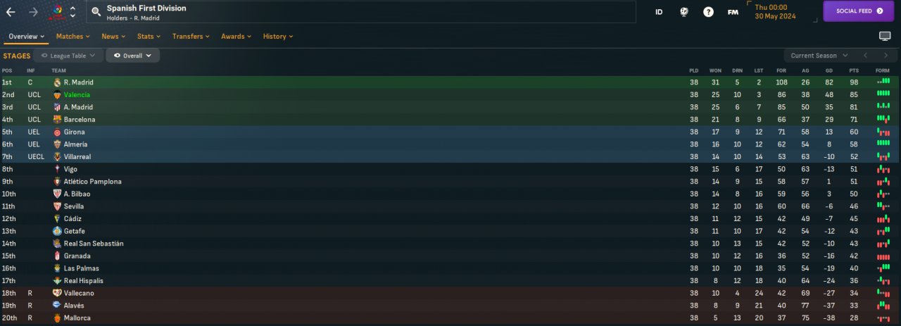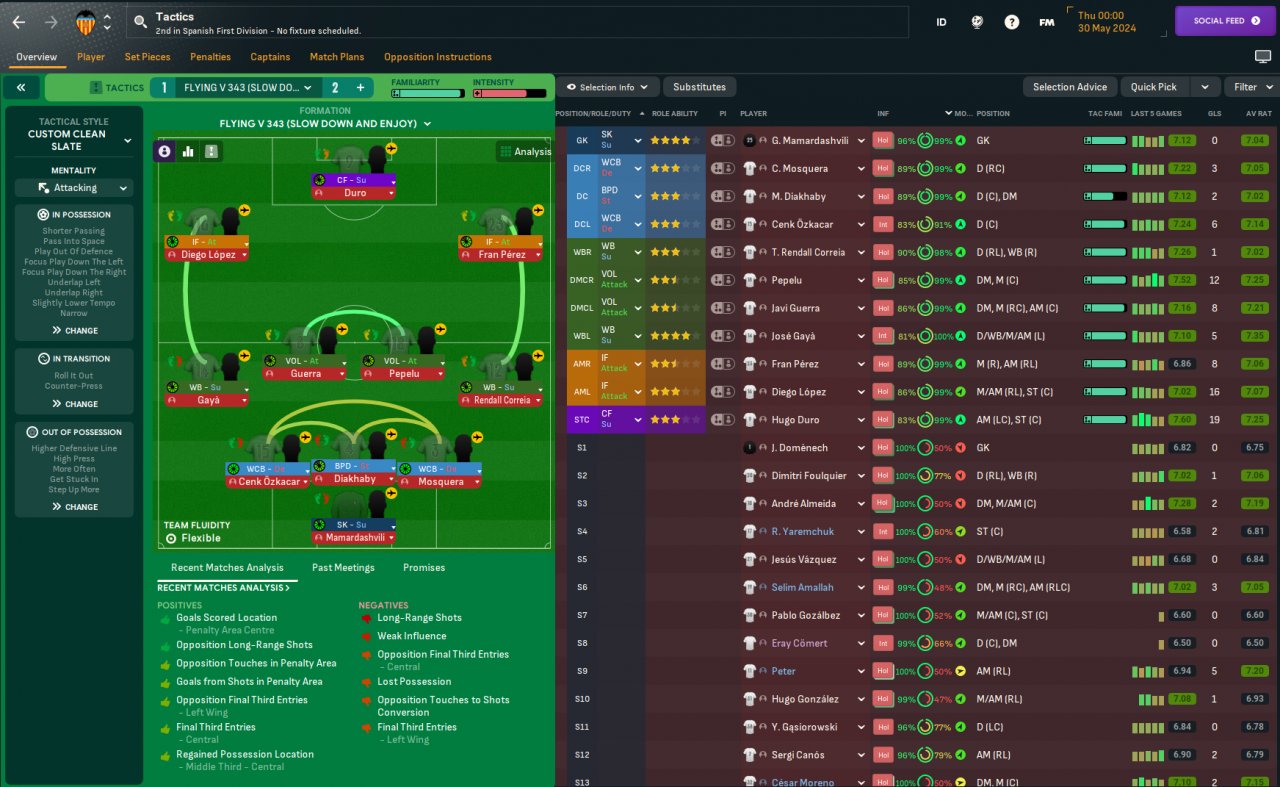 Wanted to start a save where I was challenging the two headed monster that is Real and Barca in La Liga while also exploring what can be achieved with a tactic that is uses a lower tempo, tries to emphasize maintaining possession and creating chances in the best possible spots.