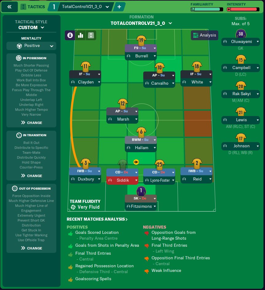 Obviously, this tactic is not perfect. None is. It is highly NOT plug-and-play. The main reason is that the "roles" of the players on the pitch are not exactly what the "description" of their roles is. I had to change the roles and instructions so that the players actually acted the way I wanted on the field, even if the text wasn't pointing toward it. You then truly need to check your players stats since a "good" defender according to the game for this position may not be your actual best choice!