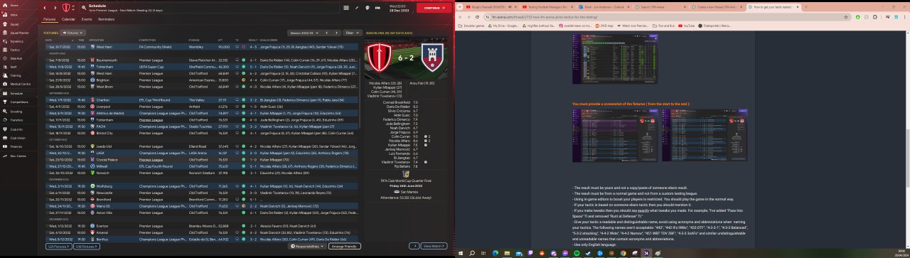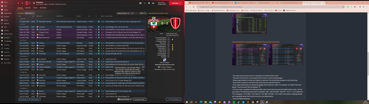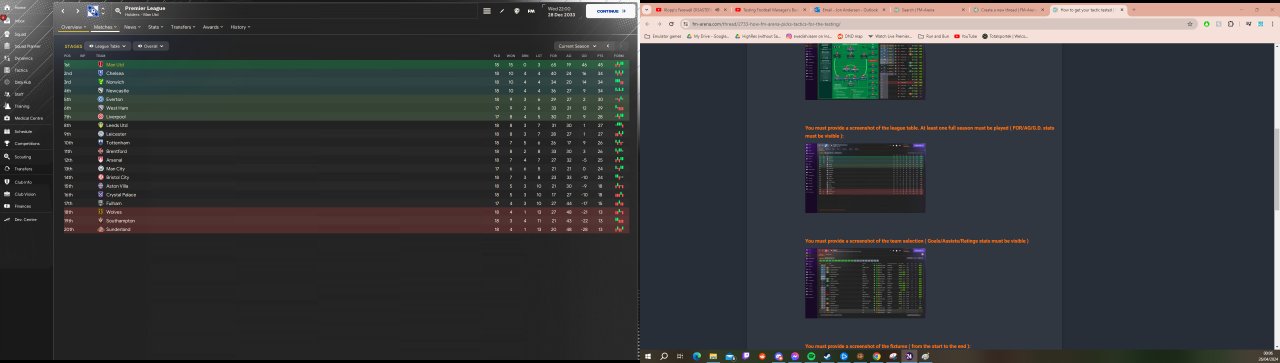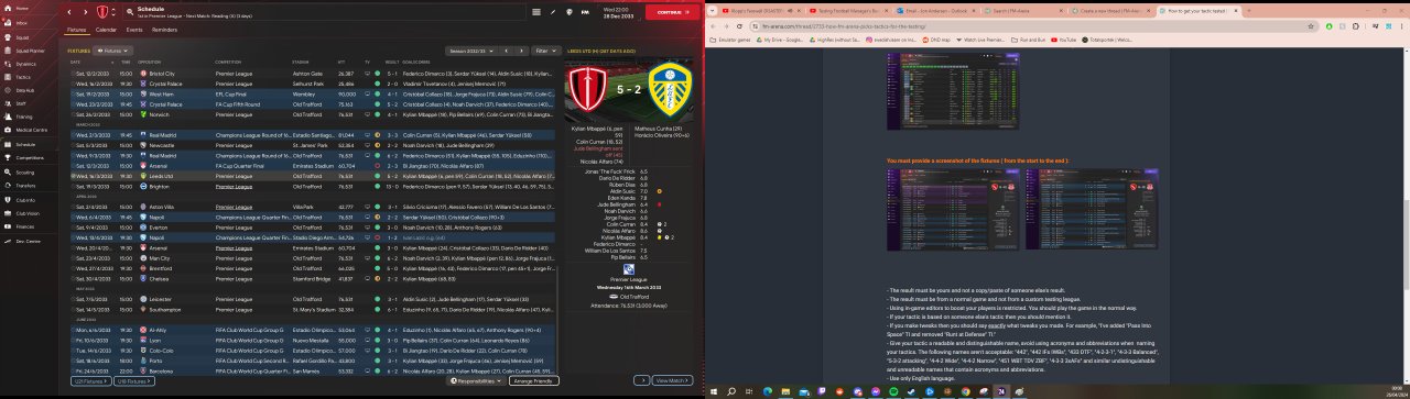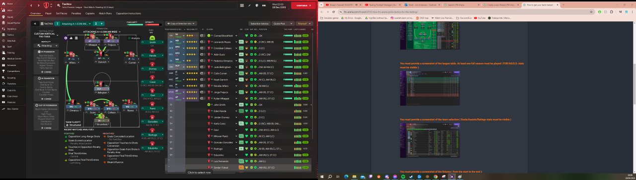 A tactic designed entirely to get your wing backs 20 assists a season. Overload in the middle and let your wing backs get to the byline and ping it into one of about 5 different options. Scored me 192 goals in the championship with Leicester, unbeaten quadruple season with Man Utd, and Dimarco had a season with 44(14) apps with 16 goals and 35 assists. Needs a good physical DM to make up for the room left in the middle, but other than that it's surprisingly easy to get going.