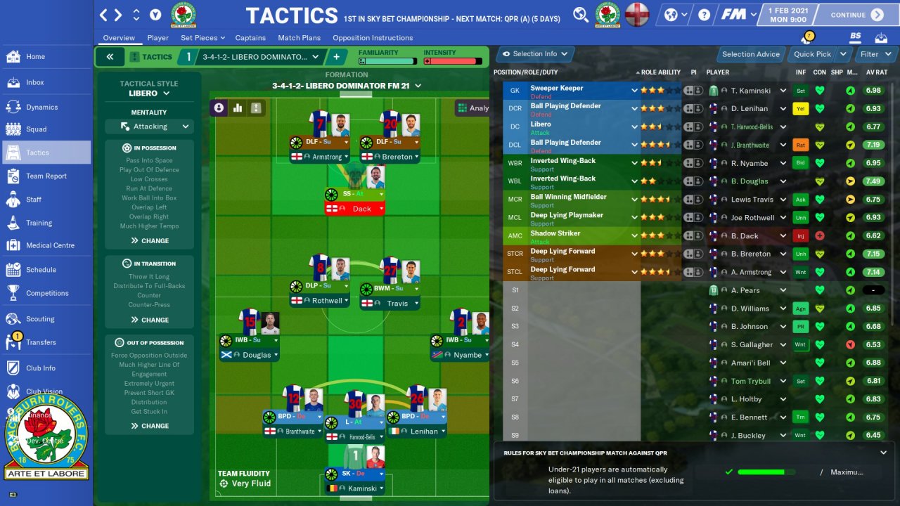 Here is the tactic formation and results with Blackburn, PSG and also some Arminia Belefield save results by another user.