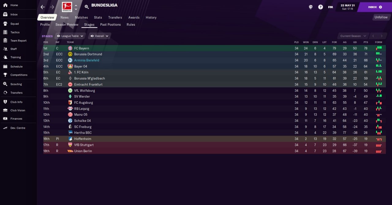 First season no transfers with Arminia : 3rd position , media expectations ...relegation-ish?
