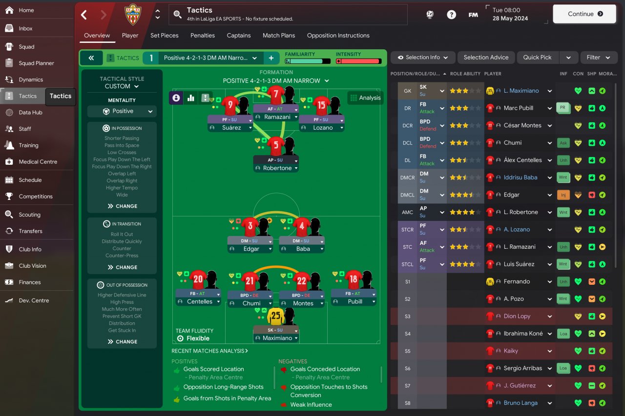 A 4213 tactic I first used with Almeria who are one of the worst teams in LaLiga but managed to secure champions league football in season 1. I found that as long as the strikers have pace they will score so many goals, with the full backs contributing to most of the assists. The fullbacks are very attacking so while you score lots of goals, you're left quite open at the back, so concede quite a lot, through trying this tactic with different teams, I found the best way to combat this is to sign pacy centrebacks. Enjoy!