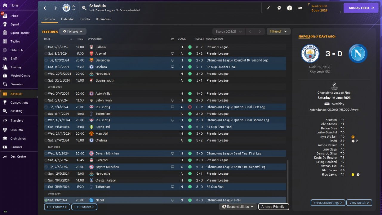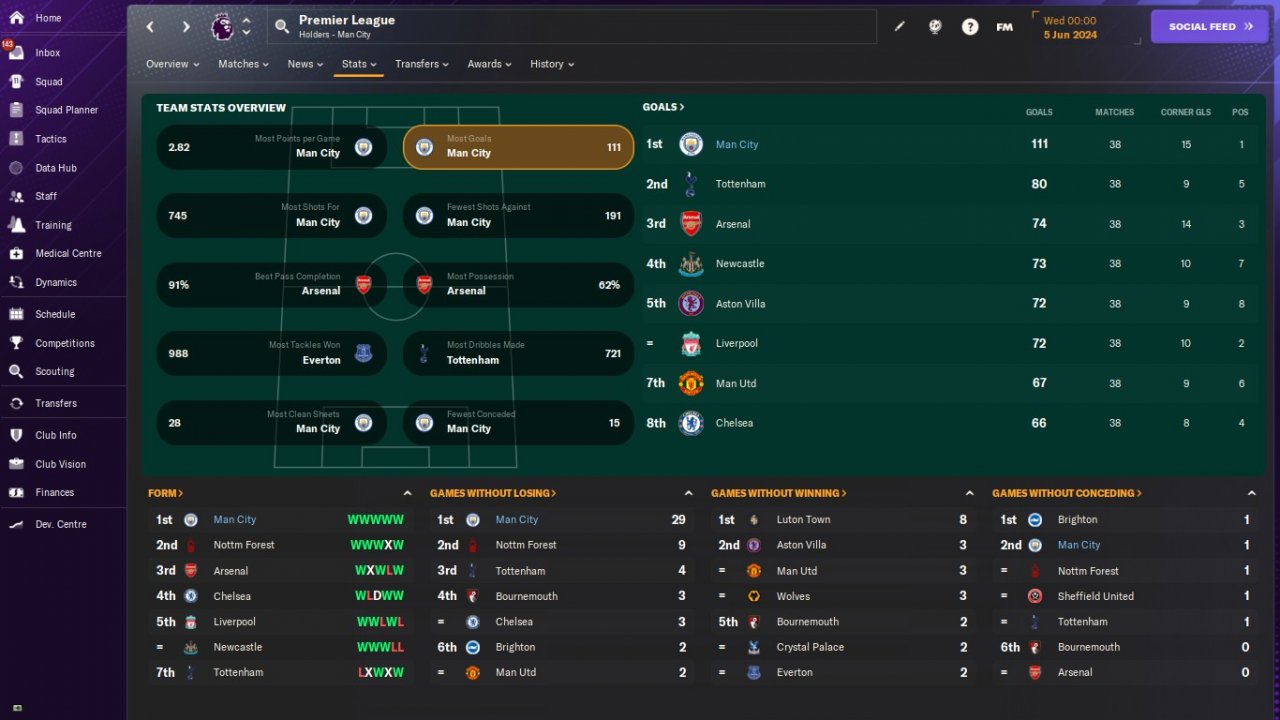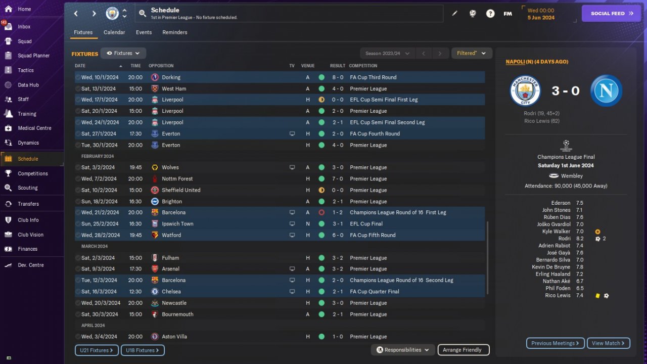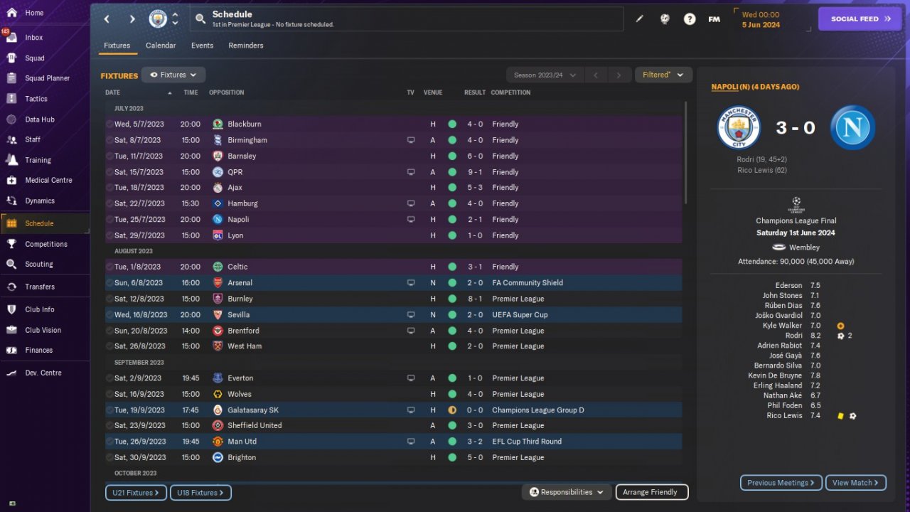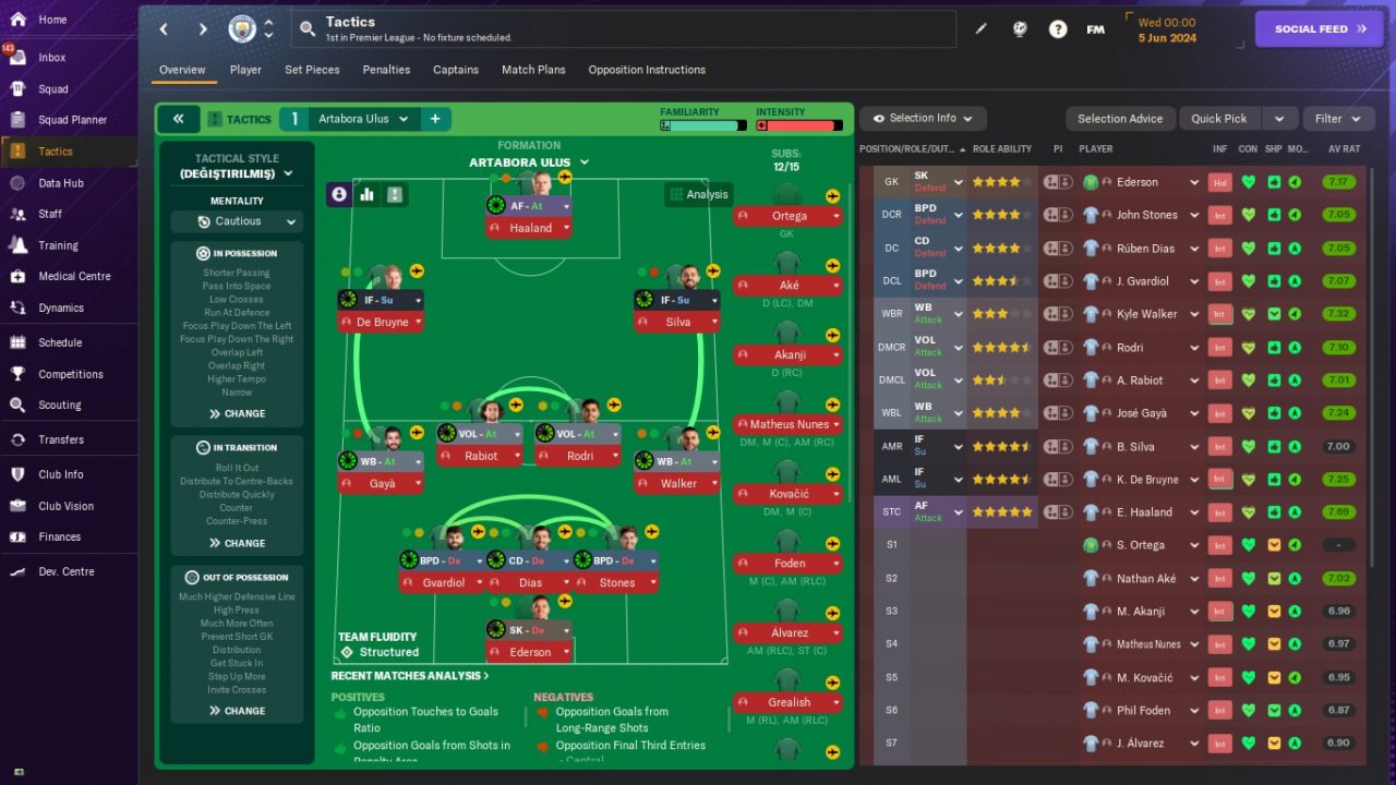 New 3-4-3 tactical trial. Cautious mentality. Scored lots of goals, conceded few. We won all competitions that we participate.