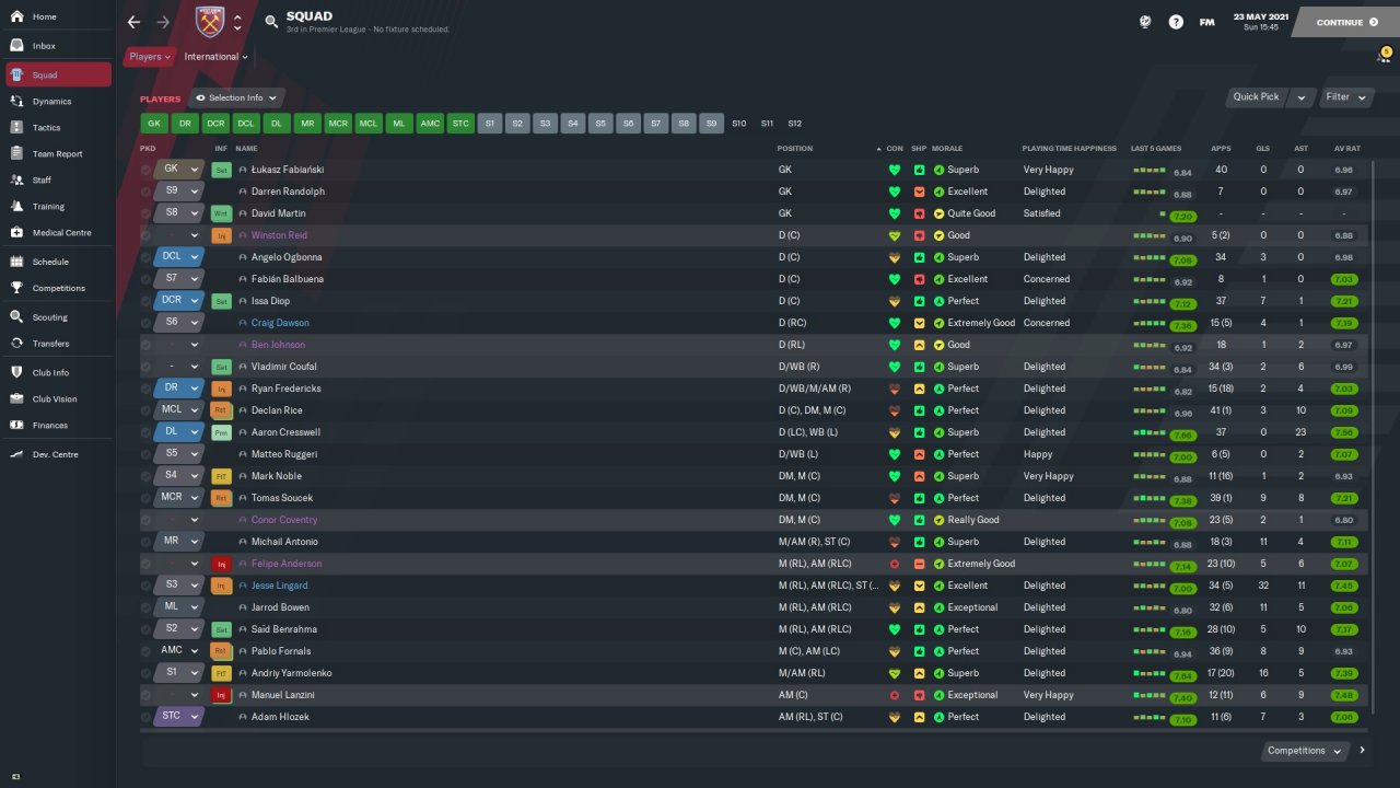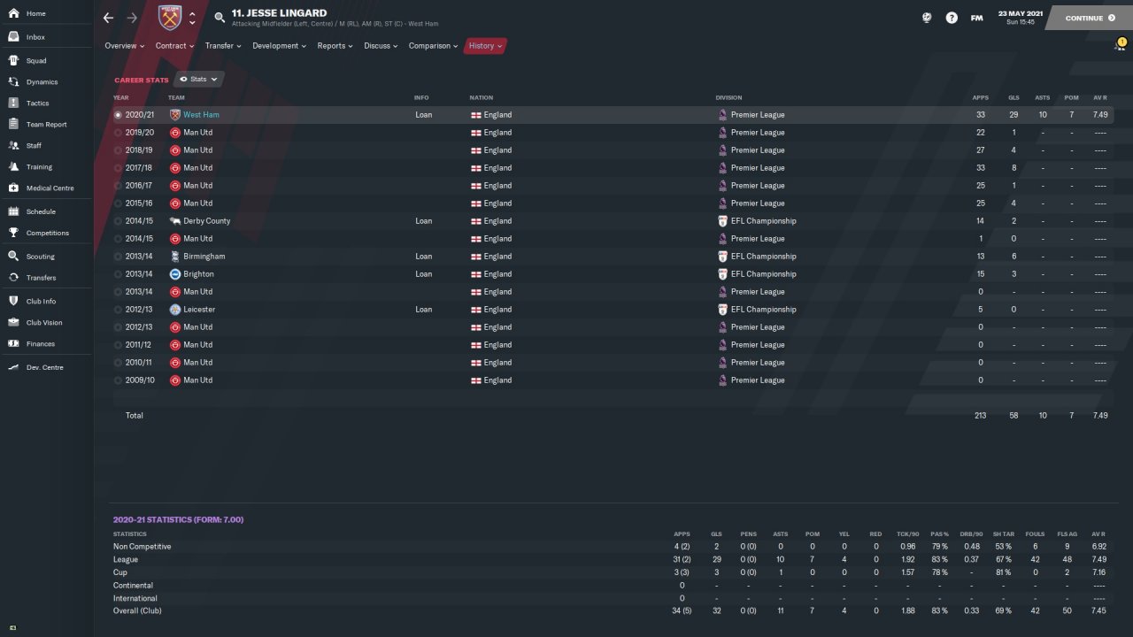 Hi JDK, I created an account just to let you know this tactic brought me incredible success at West Ham in the first season. The football on display was at times breathtaking and far more beautiful than that produced by other so-called "exploit" tactics. I came third in the Premier League and also won the FA Cup. Michail Antonio sustained a long-term injury during the season and I had to use Jesse Lingard as a make-shift striker for large periods - he performed amazingly in this role, becoming top scorer in the league with 29 goals. His high off the ball attribute meant he found space time and time again.