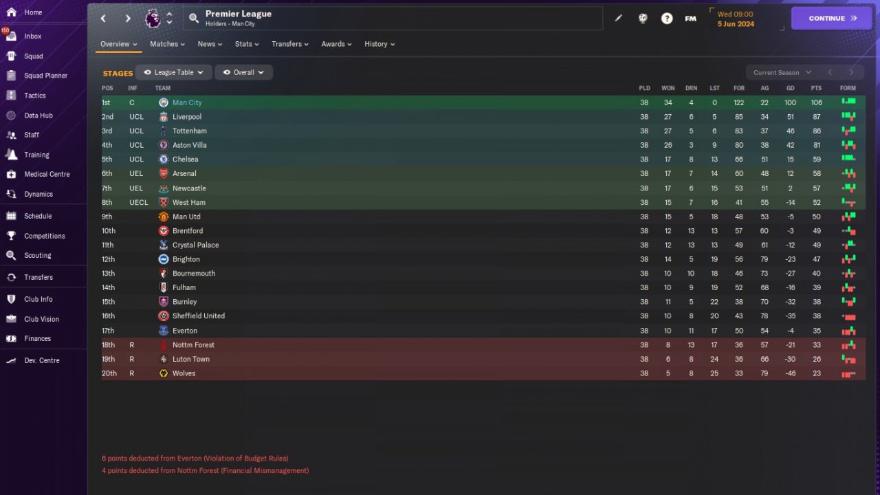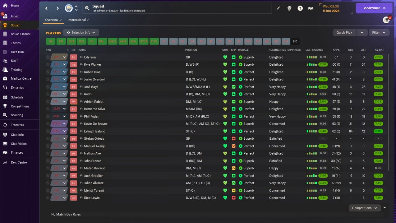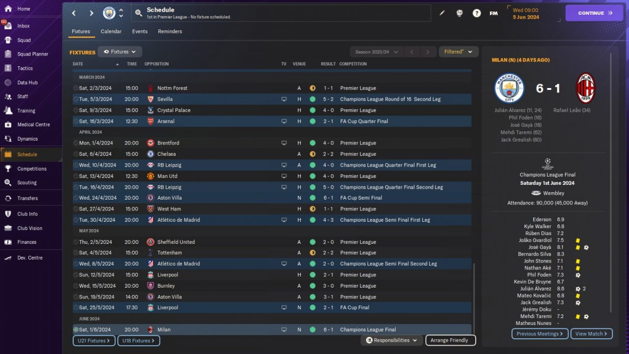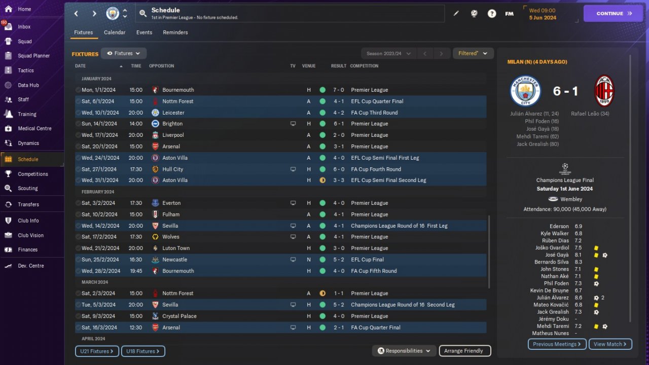New 4-2-4 tactical trial. Positive mentality. Scored many goals, conceded few. Invincible league season. We won all competitions that we participate.