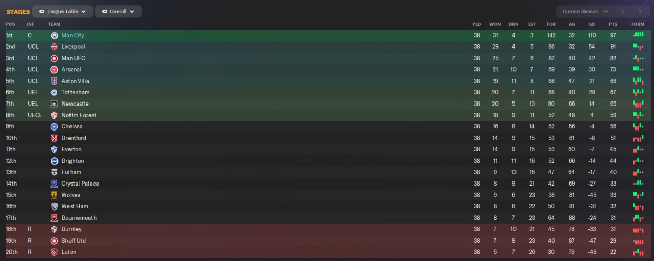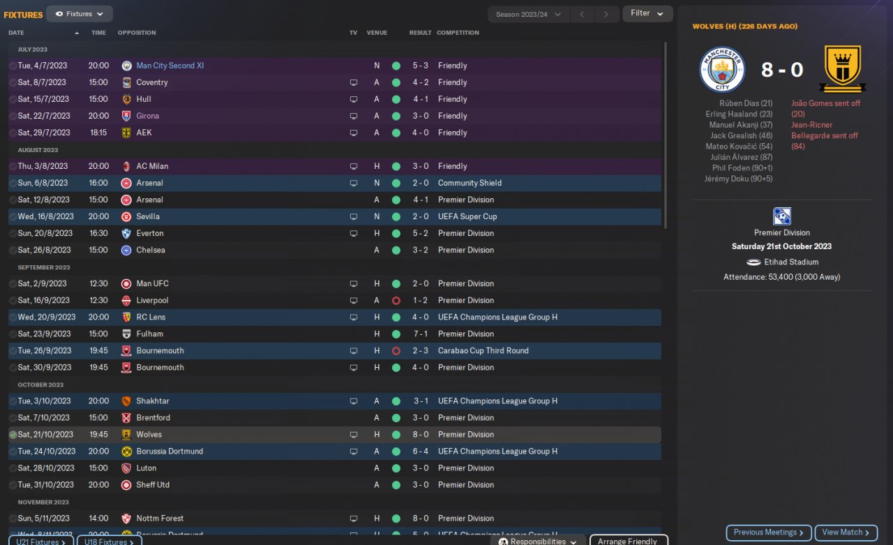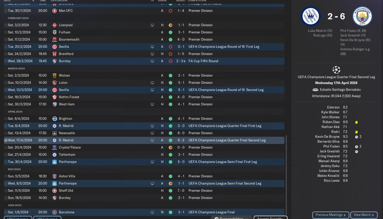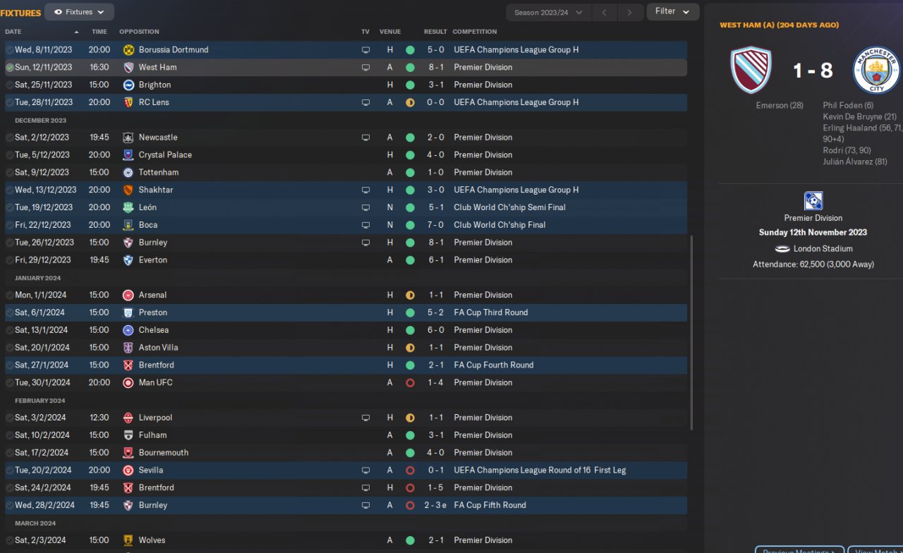 goals all around, all midfield and attack score alot , quite a few 7 and 8 goal games , had one bad spell due to injuries and suspensions or could have been alot better