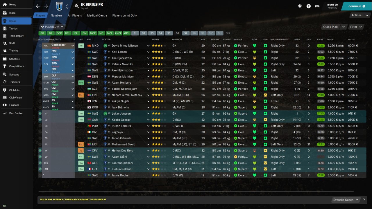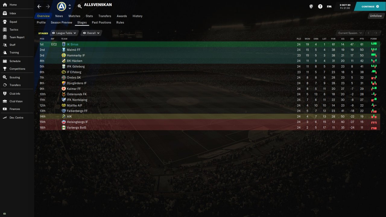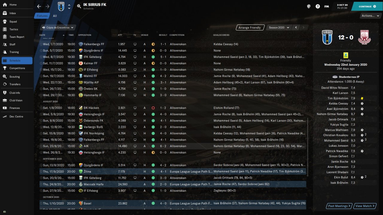 I was planning to end my first season with predicted 9th IK Sirius in Sweden, to show you my dominance in the domestic league. But I got so ecstatic with my Europa League qualification matches, with a final 4-0 destroying of a much stronger team (Basel), away!, going through to the group stage, that I had to share it with you guys.