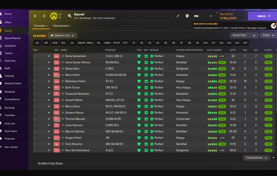 Bvb testing. Taking 91 pts in Bundesliga. I use fm rte for all teamb in bundesliga. All teams morale do super.
