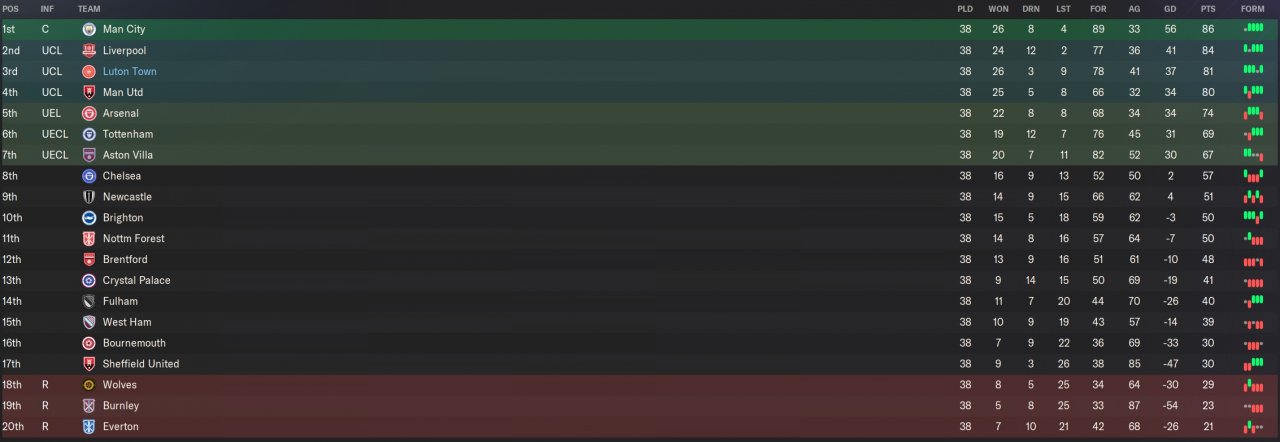 3rd in PL as Luton.