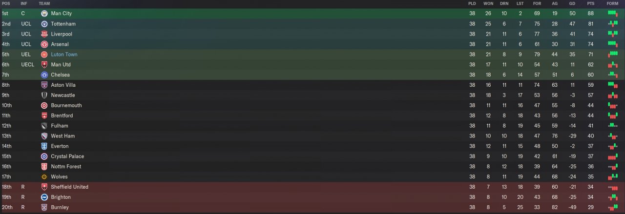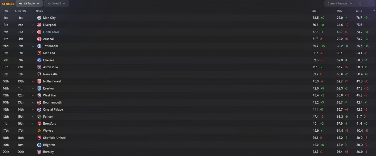 5th in PL as Luton (with 70+ xPts) and won Carabao Cup.