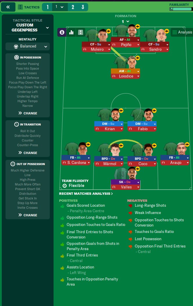 A narrow 4213 with solid attack and a solid defense, been toying around with a few roles and instructions and this is the best that I got out of this formation. Enjoy and hopefully it's useful for you as well.