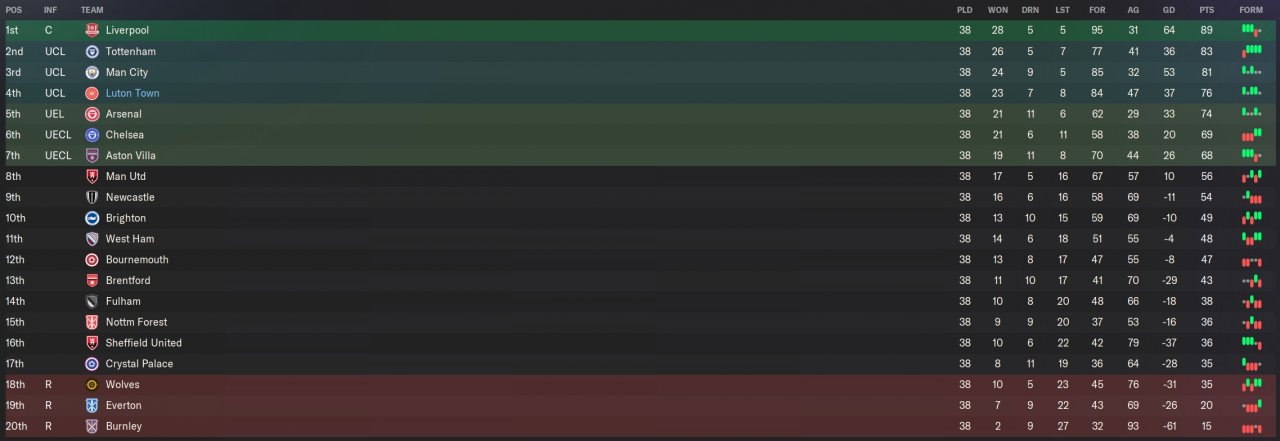4th in PL as Luton.
