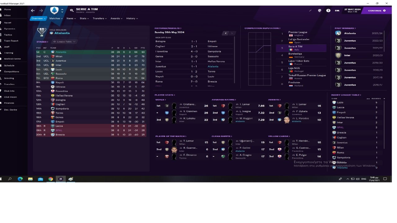 in my first season in atalanta! super result! I prefer right foot (amr) left foot (aml)! 80% of the matches were played with the tactic 4-2-3-1! there is another 4-2-2-2-0 tactic that I put in some matches that I wanted to play more defense! I will upload both tactics!