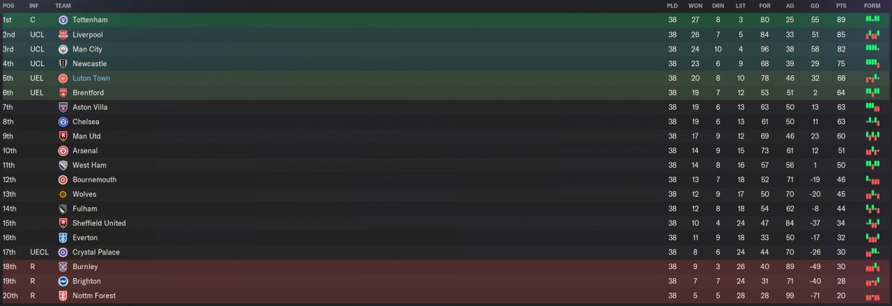 5th in PL as Luton.