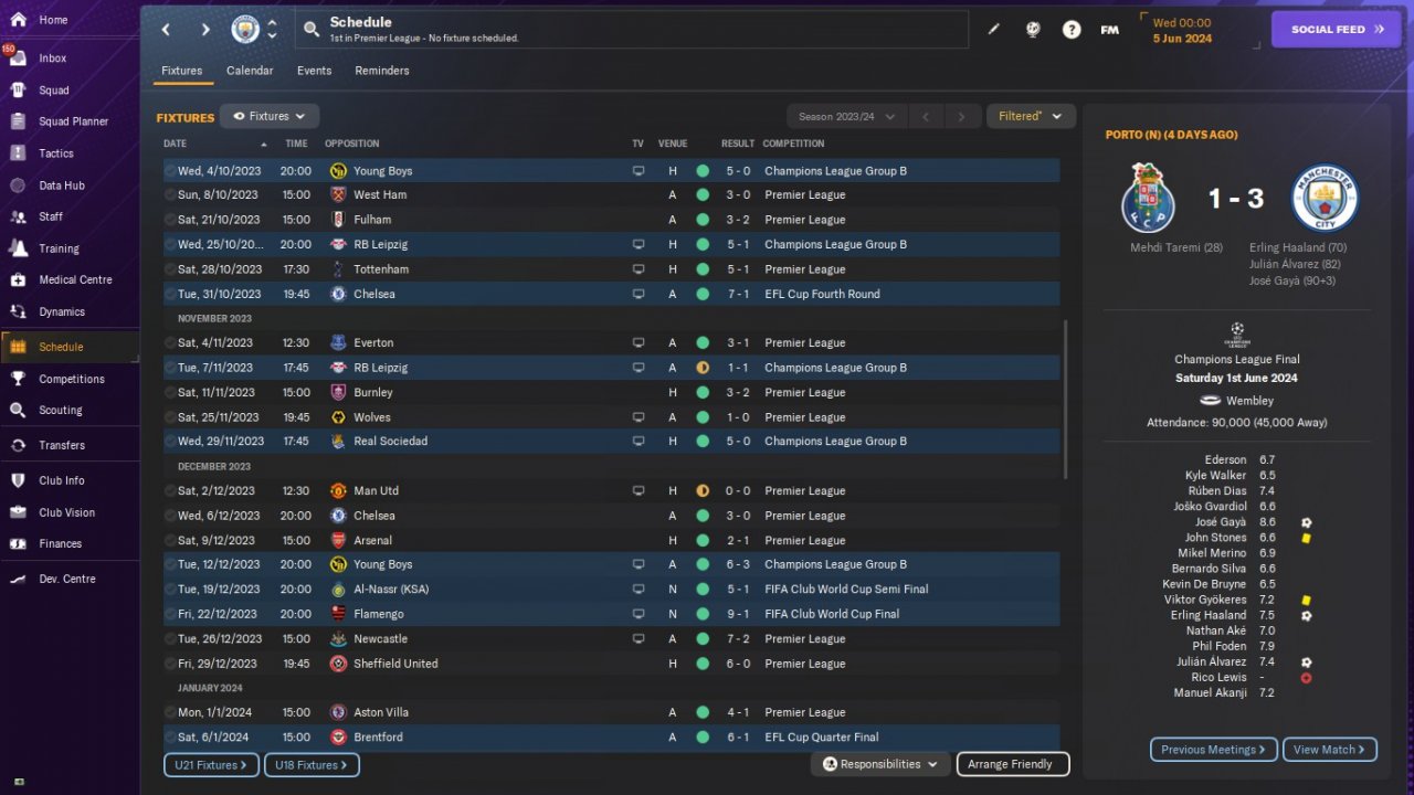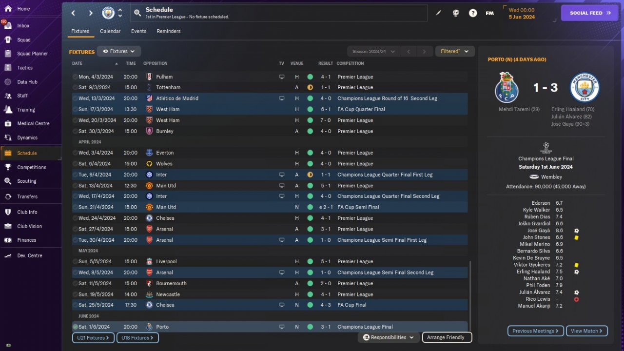 We won all competitions. Invincible league and Champions League season. We only lost in EFL Cup Semi Final First Leg against Liverpool.