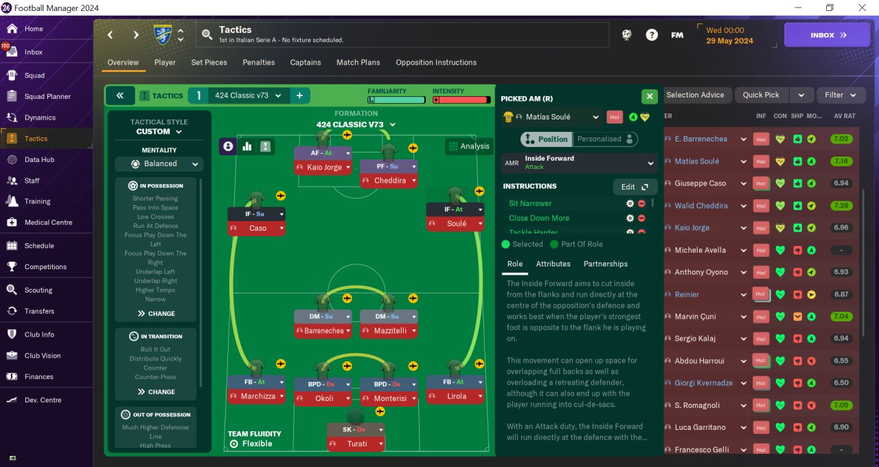 thank you for the advice, i already tried underlap left and overlap right in a previous version but it didn't worked very good. I thought to try this because right IF often plays as a striker when the PF lies between midfield and attack, so maybe without HoldUp he could go straigther towards the goal.