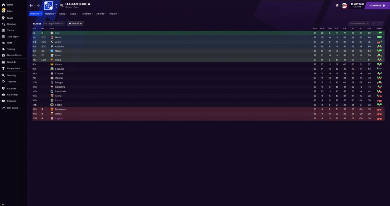 Juventus have won Serie A the past nine seasons in a row, but this year both Milan clubs are currently sitting above Juve and it's Inter who look the strongest and favourites. Regardless of their title challenge, one thing remains certain: Antonio Conte continues to be one of the most tactically astute managers in world football.