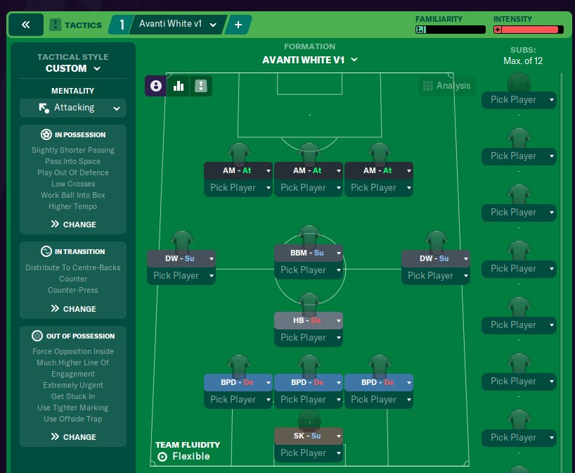 I have been experimenting a bit the last few days with 3-4-3 tactics and finally made one that has been giving me good results. The set piece routines are from other tactic, as I have been getting good results with them.