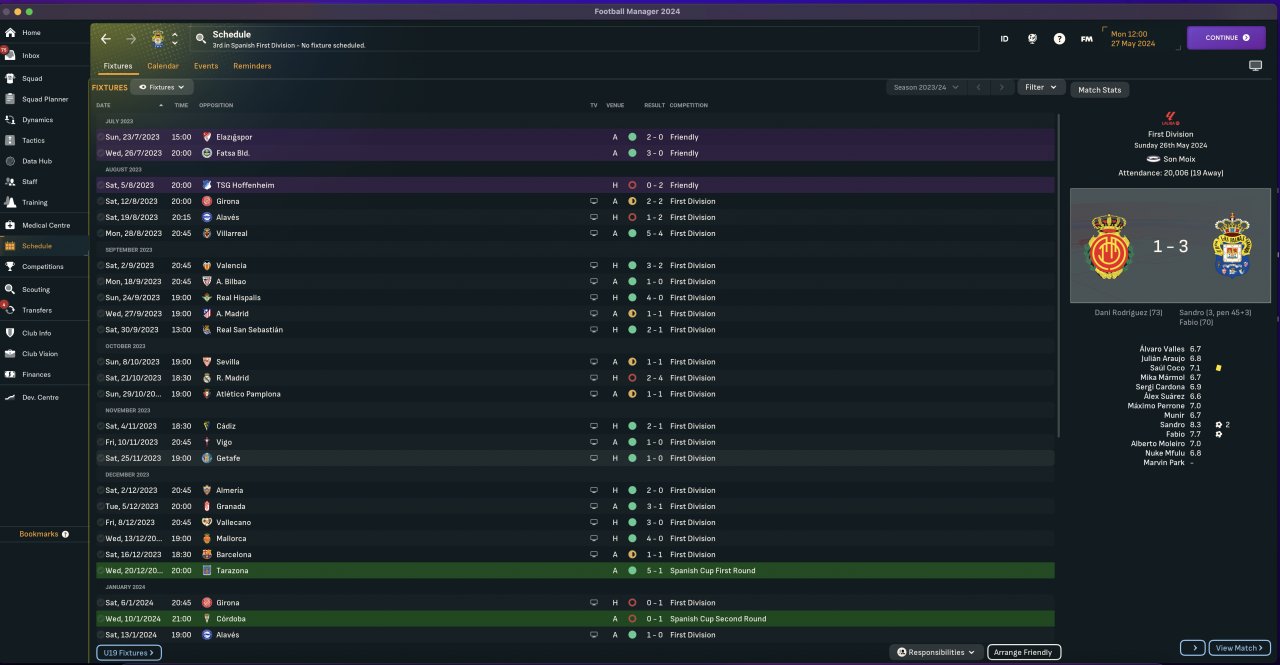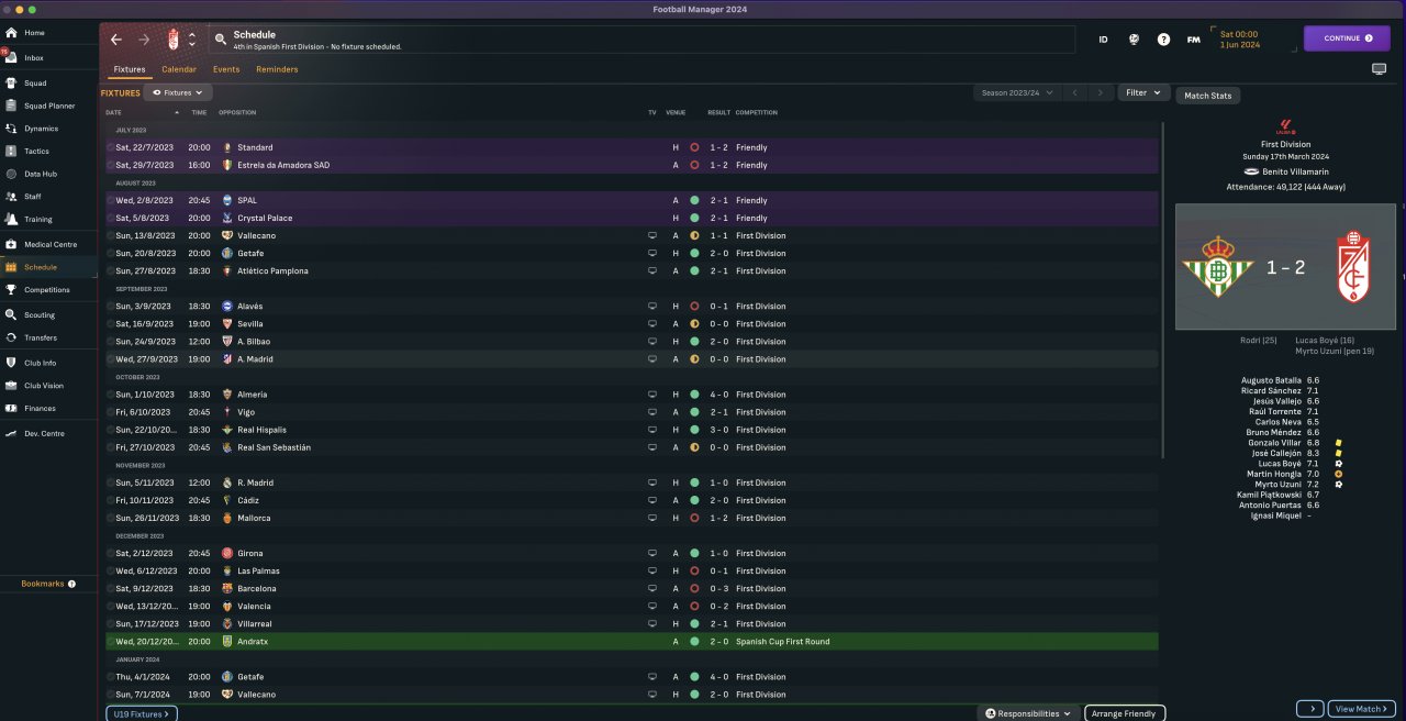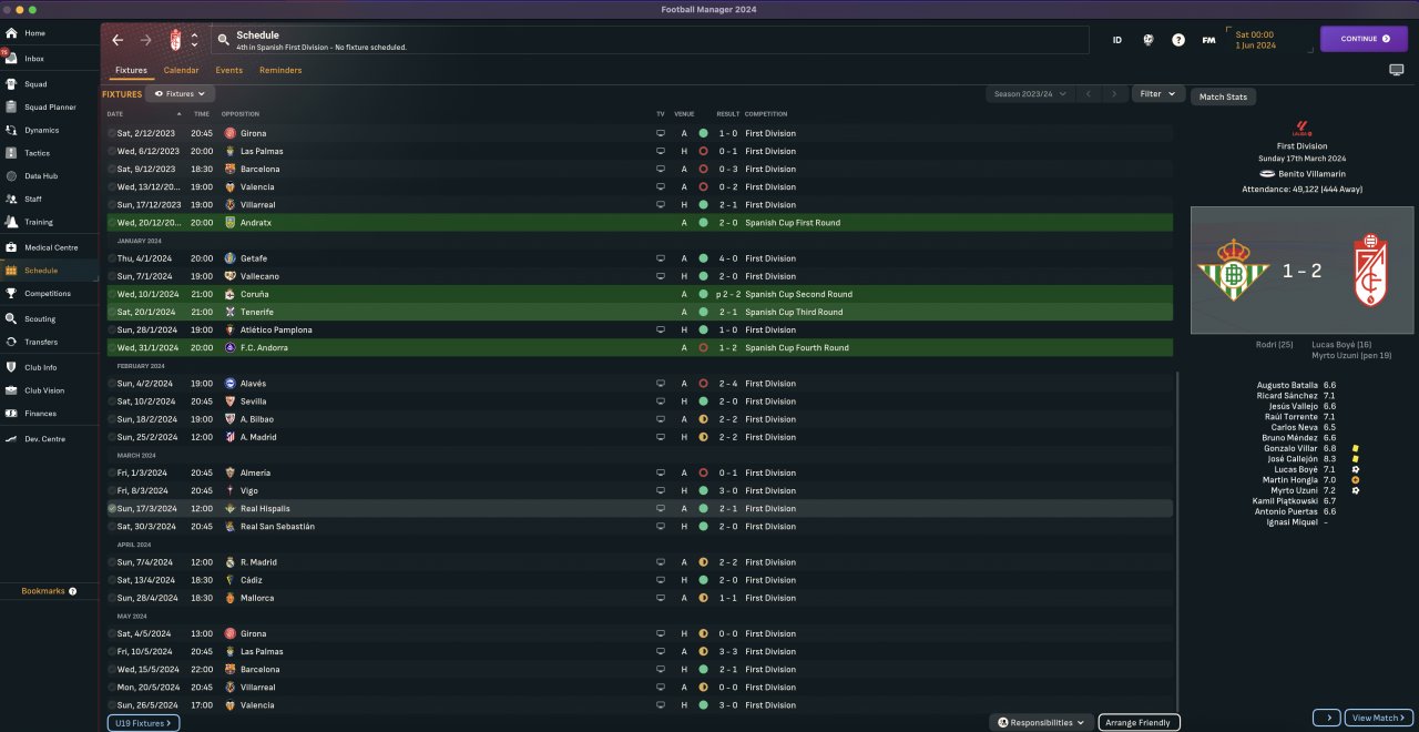 Tested with both Las Palmas & Granada