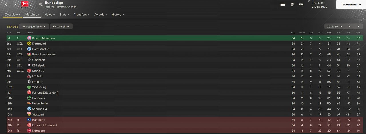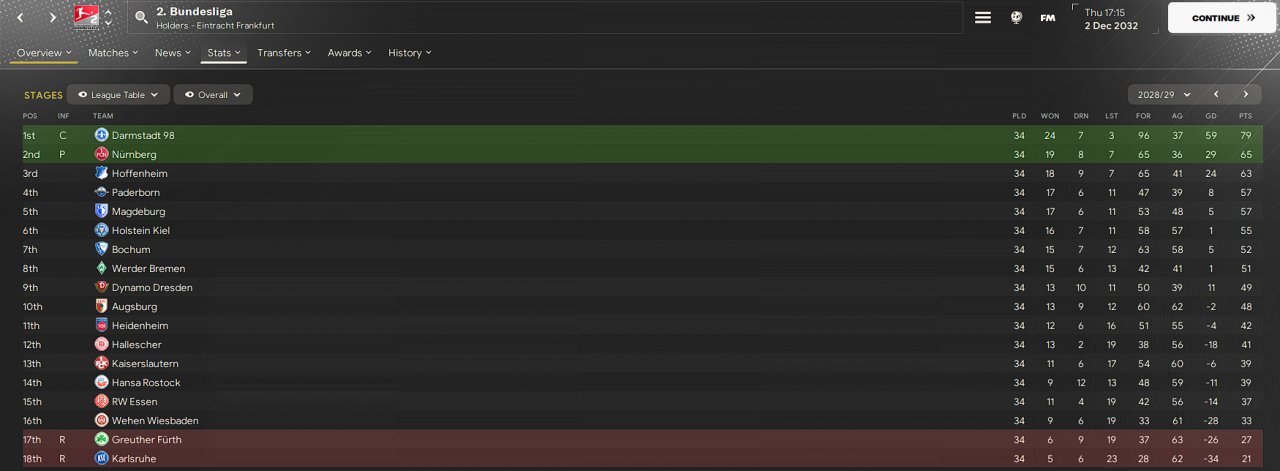 Finished 1st in Bundesliga2 then 3rd in Bundesliga newly promoted with Darmstadt in my journeyman save.
