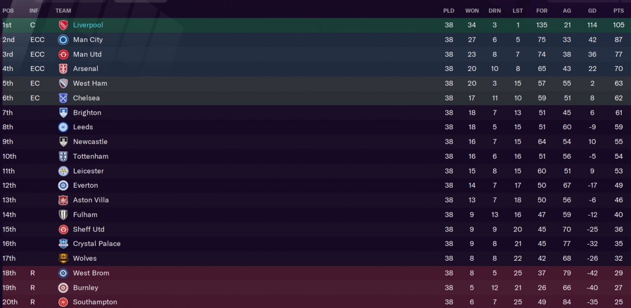 Electra was developed for FM 21.4.0 and is my most successful FM21 tactic so far. Liverpool won the Premiership with 105 points and also won both the FA Cup and the Champions League.