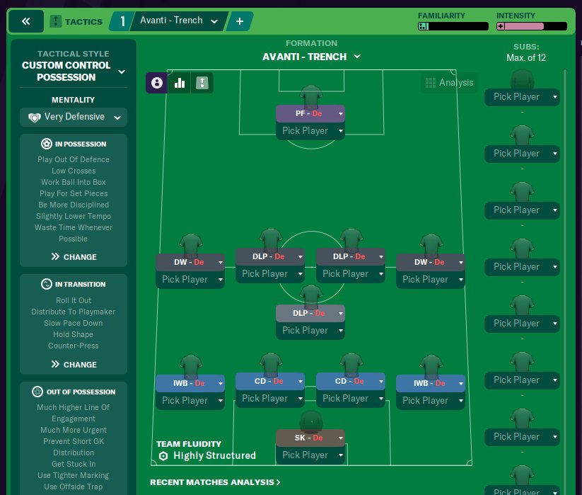For anyone who is going to be using this for that purpose, I recommend switching to this only after you have a comfortable lead of 2 or 3 goals. To further decrease intensity and keeping your players fit, feel free to remove "tackle harder" from the three DLP and the GK, as well as removing the "get stuck in" team instruction. There shouldn't be much difference in performance. But keep the "tackle harder" on your two IWBs and CBs.