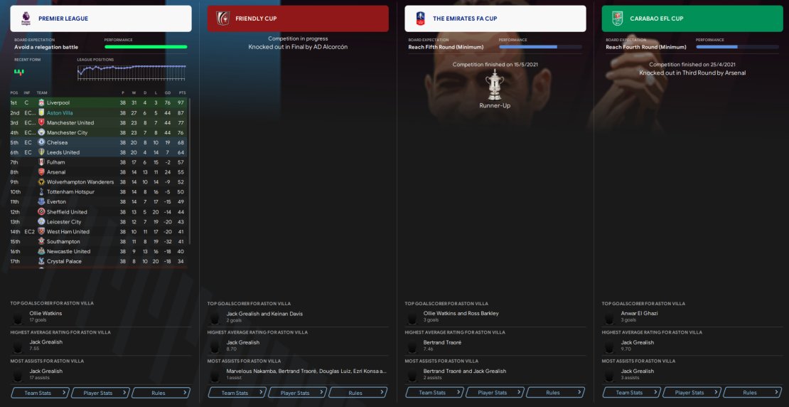 Tested with both Liverpool and Villa, no FMRTE used and team selection and training left to AM. Some screenshots -