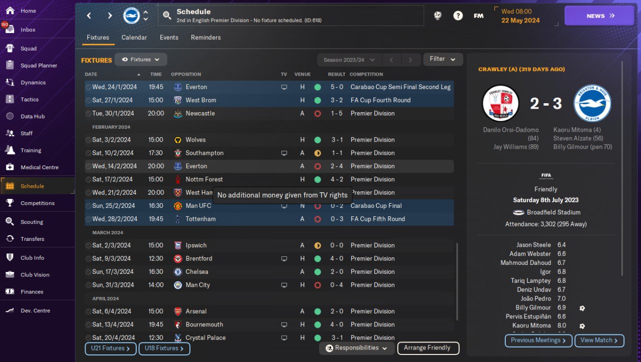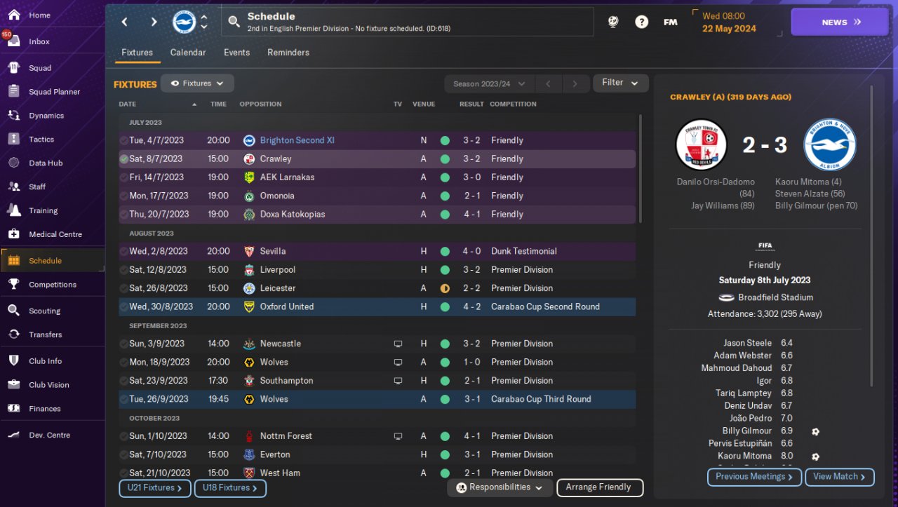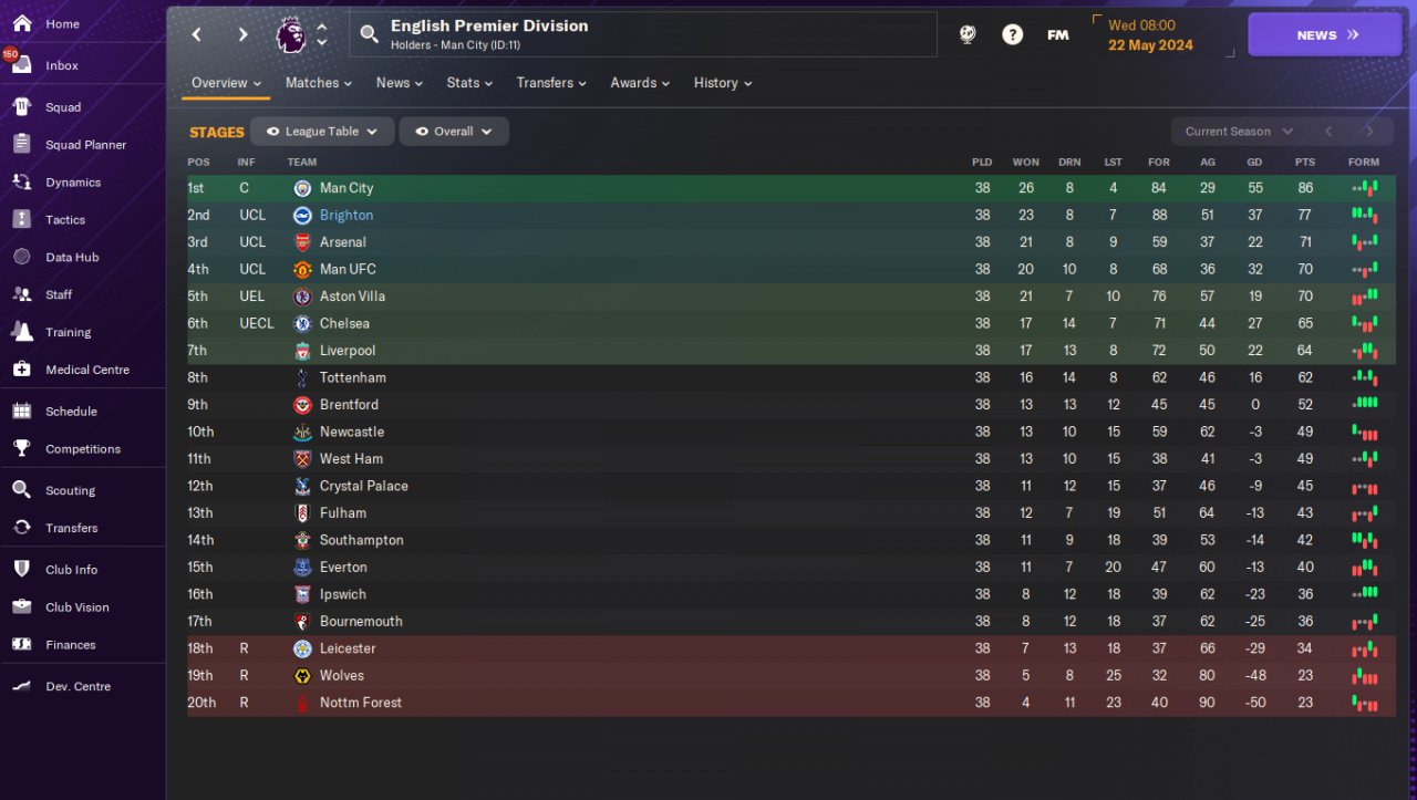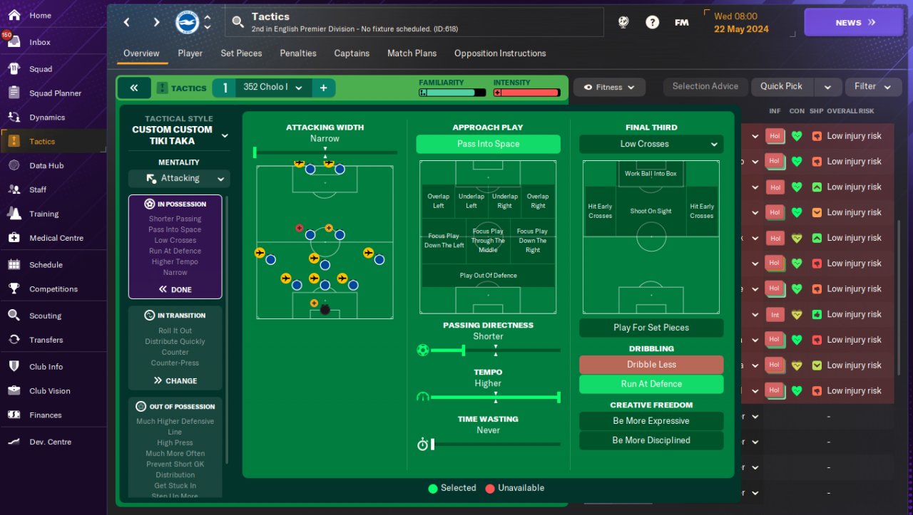 Back to my roots, the 352 tried to counter the weakness of the 352 in FM which is defending with only 8 players in the box which is pretty difficult also with no wingers so you get big burden on the defense, two strikers mark the two DM'S 90% of teams in FM play with double DM'S.
