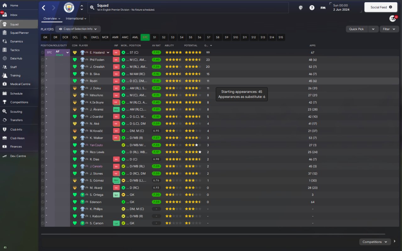 Vol changed to Support, wingback to fullback and AM to SS>.