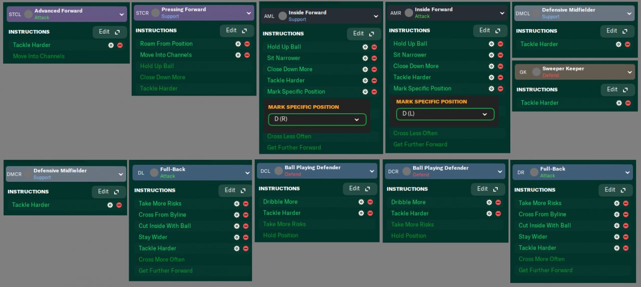 It's the same instructions as problem solving, add roam from position to your inside forwards and remove it from the pressing forward