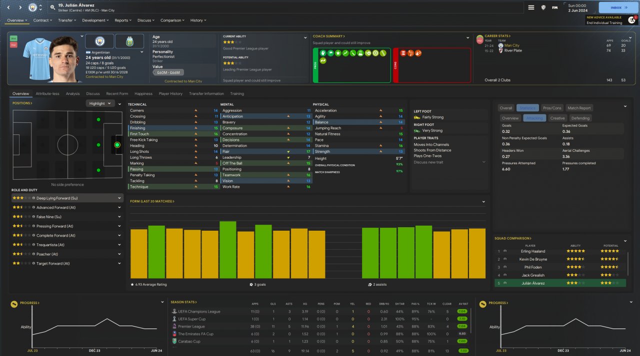 Useful traits: Likes To Switch Ball To Other Flank, Moves Into Channels, Plays With Back To Goal, Stops Play, Tries Killer Balls Often